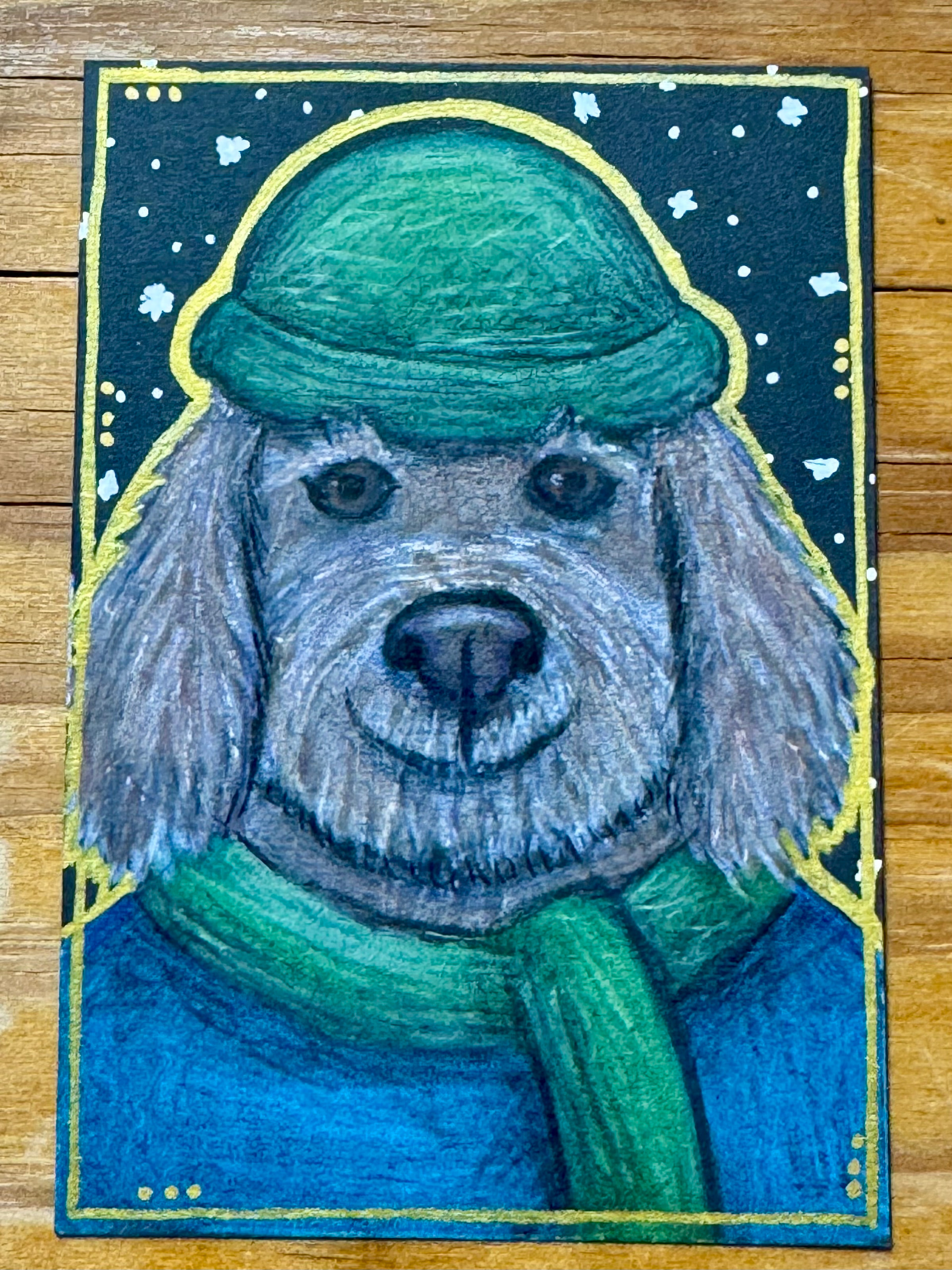Next up is an adorable ATC from @Kwality570 . She sent me an ATC of my beloved little boy, Murray, all grown up and ready for a date!