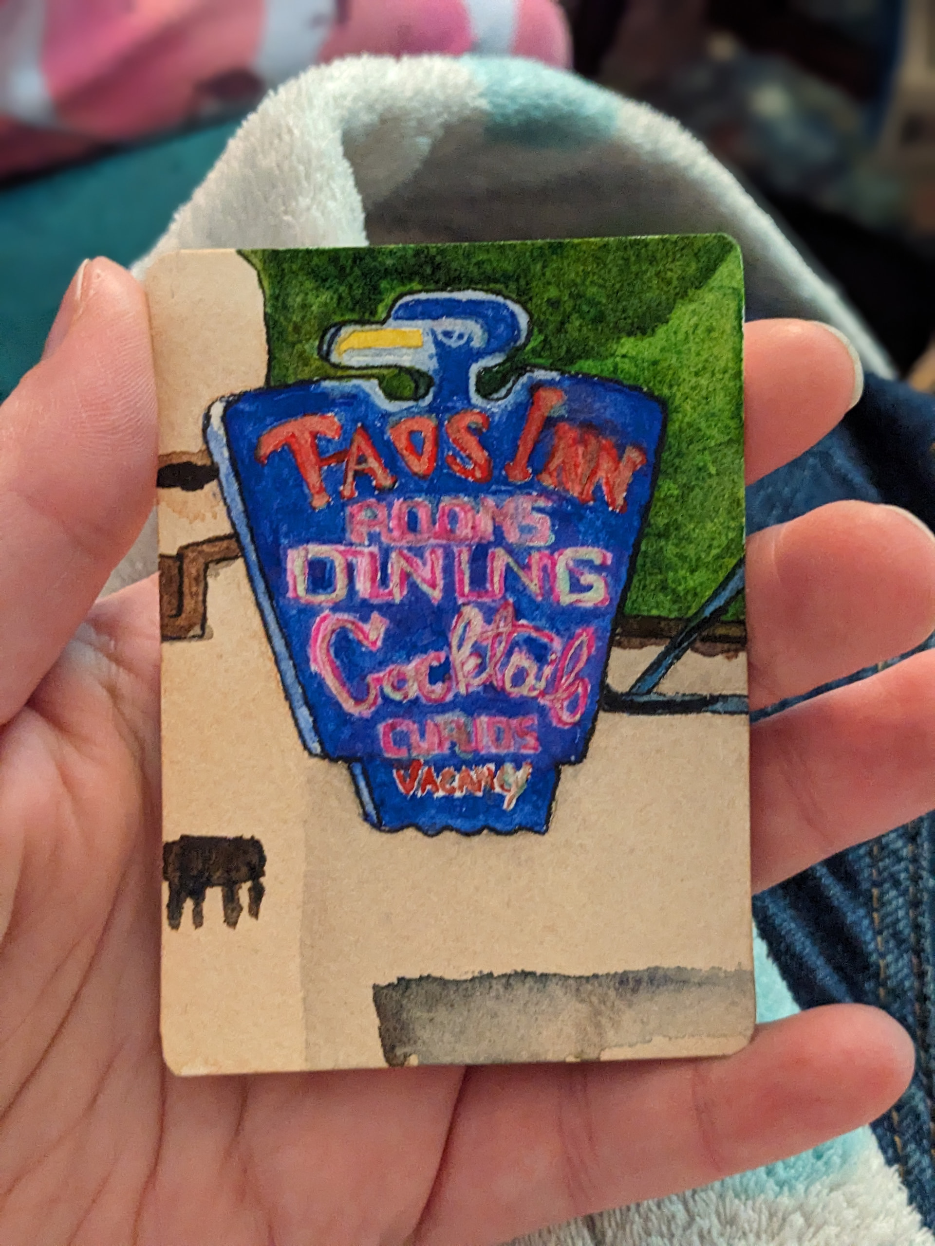 I received today from @MamaRhi for my “an old sign in your town" theme. I love the neon glow detailing to this one, and the impressive watercolour work!