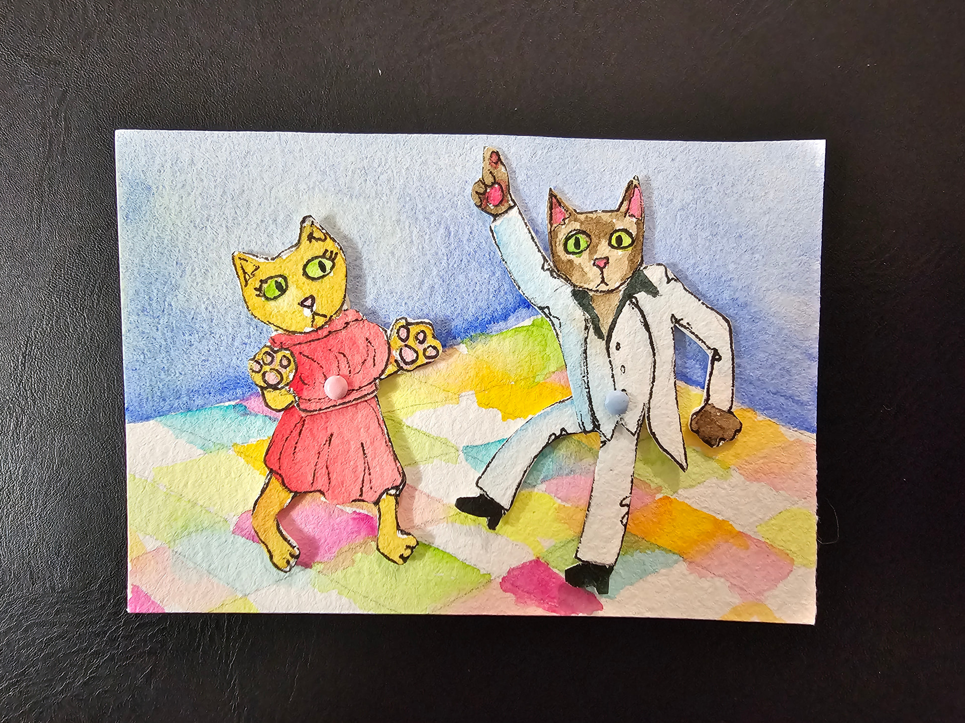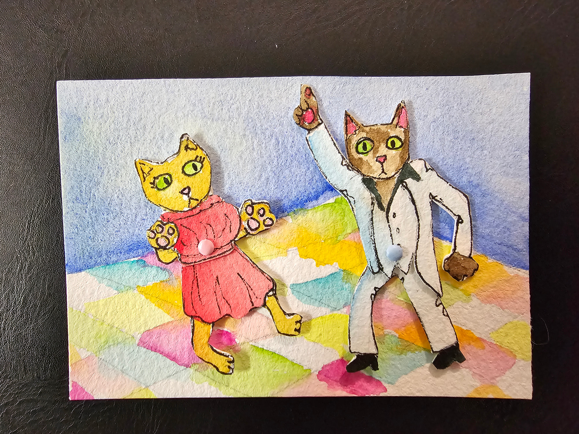 First up, from @Mountains_and_Clouds , i was hoping i would get one of her incredible moving ATCs and i did! Plus, its cats, so you know i love it!