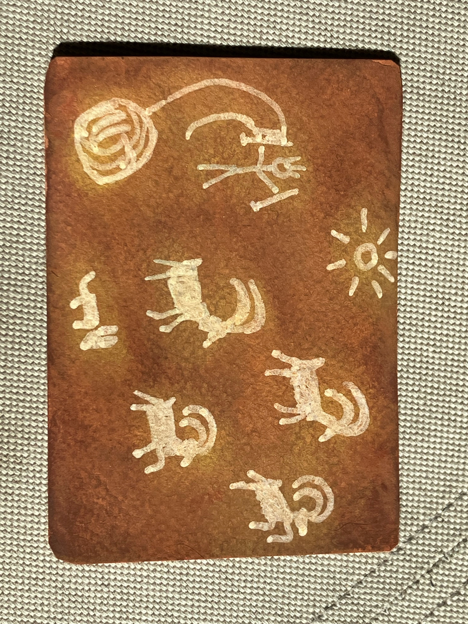 The Palio art from @MamaRhi is very cool. I like the watercolor brown background. I’m trying to figure out what the human figure is up to…is it knitting sweaters for the antelope?