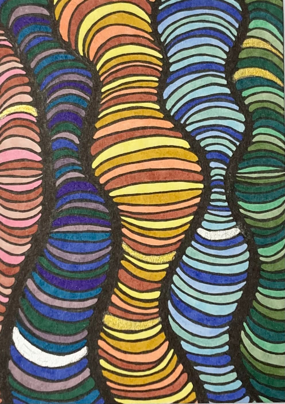 Bright colors with a pop of metallic! One of my favorite doodles to do too.