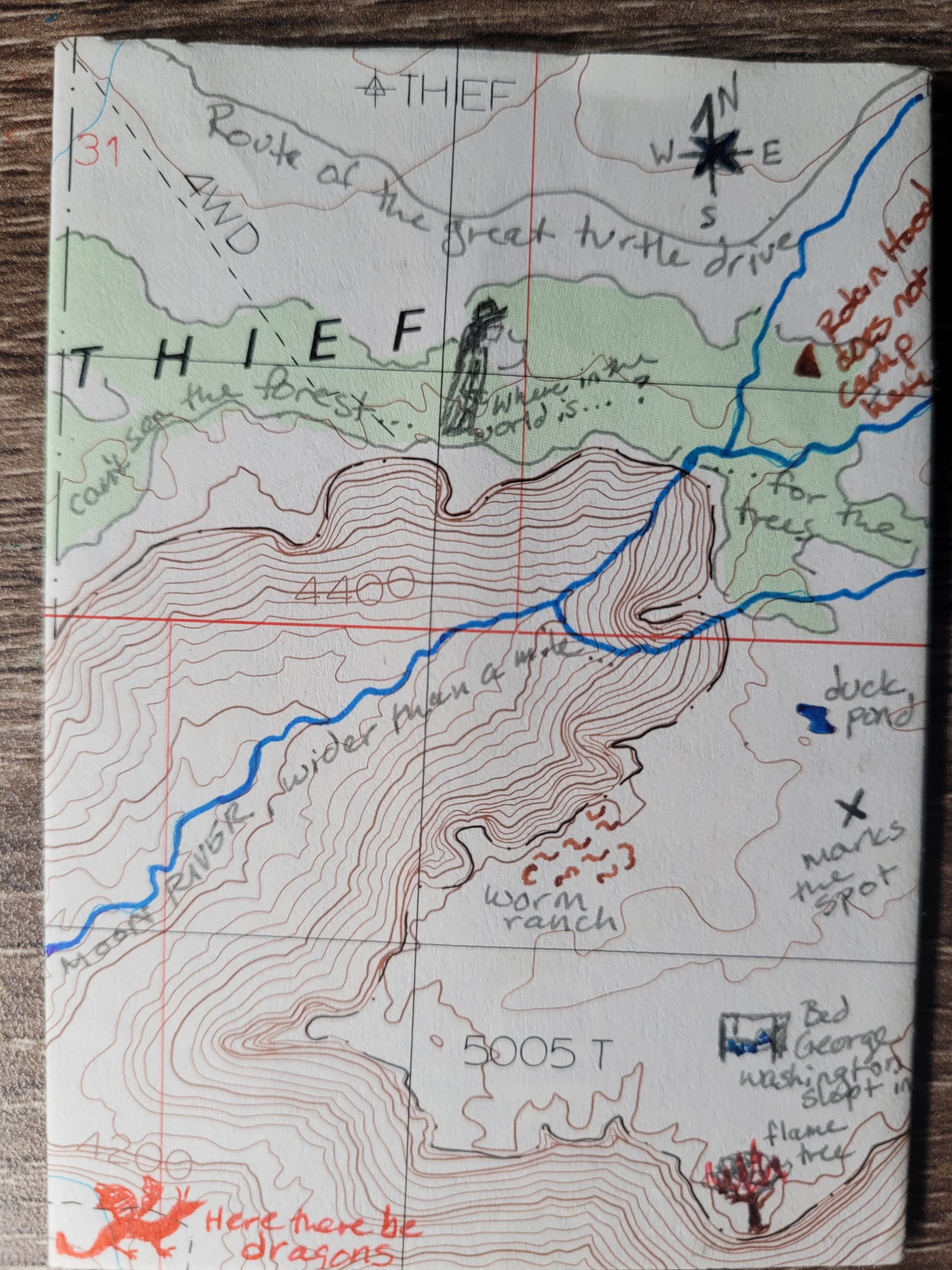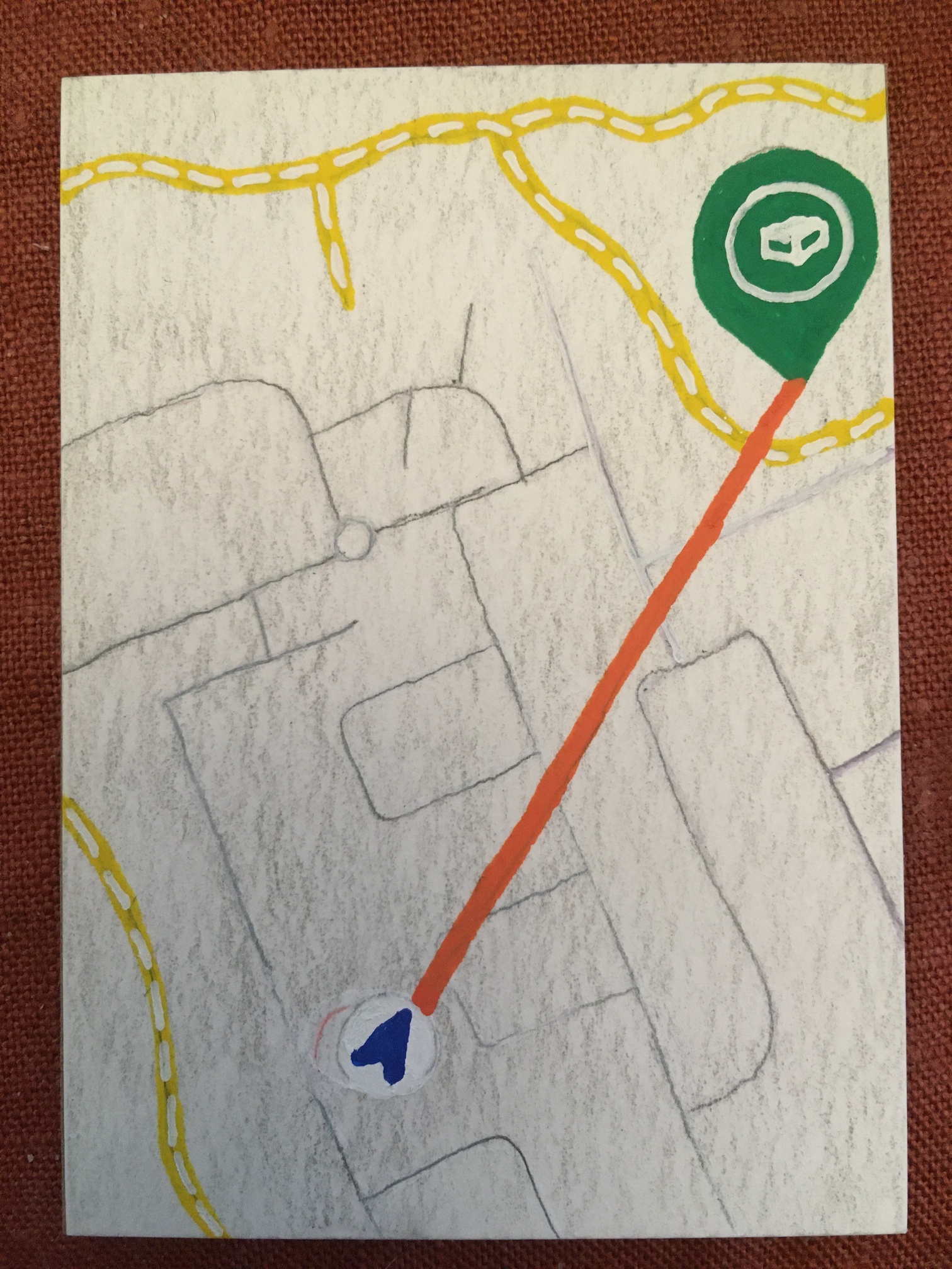 A map from @irid3sc3nt (with help from her cat, she says) of a geocache walking route: