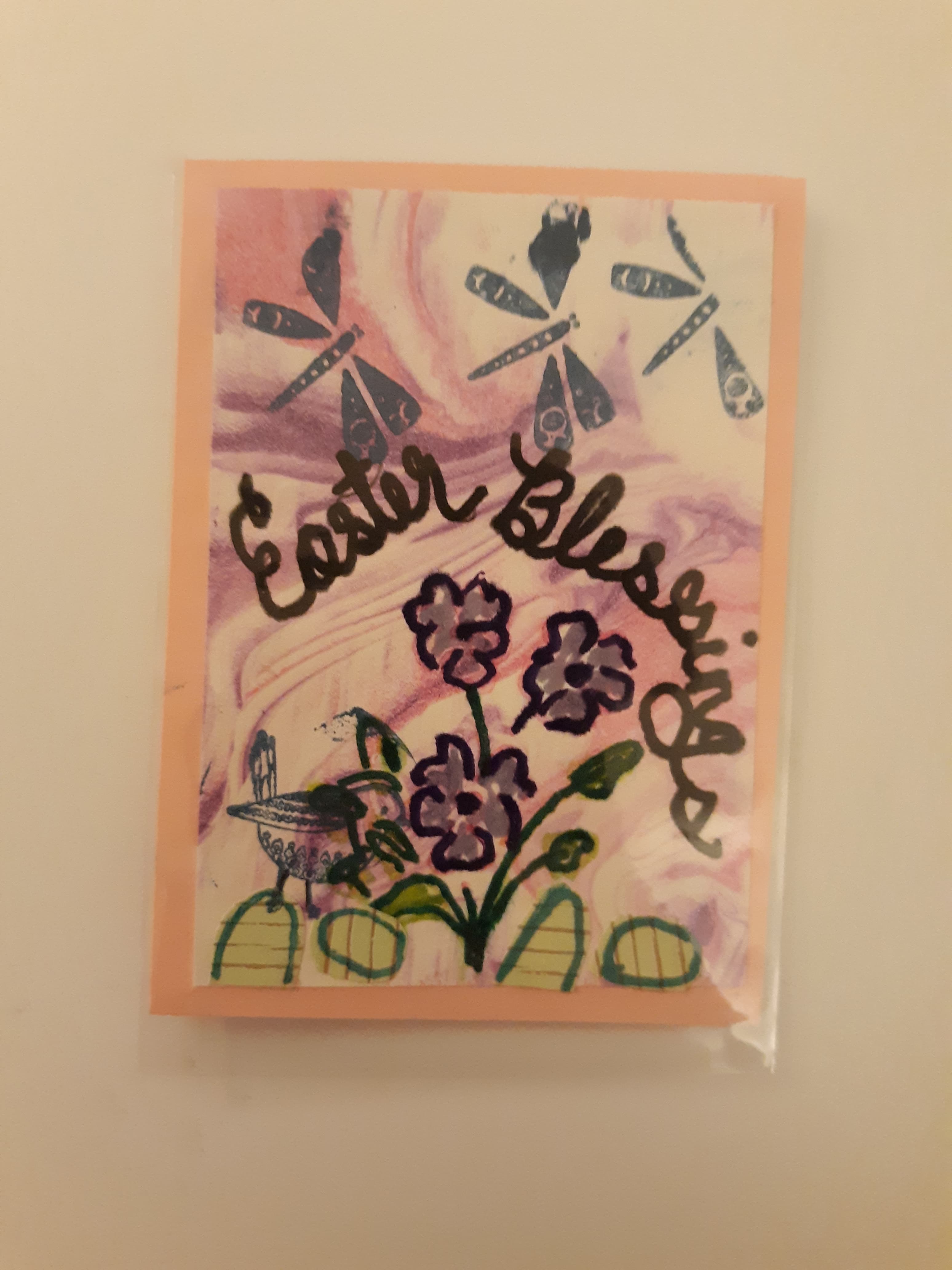 I received a sweet fairy realm portal card from @juju! It doesn’t show well in the photo, but it has a sparkly window and sparkly door hardware. Thank you!