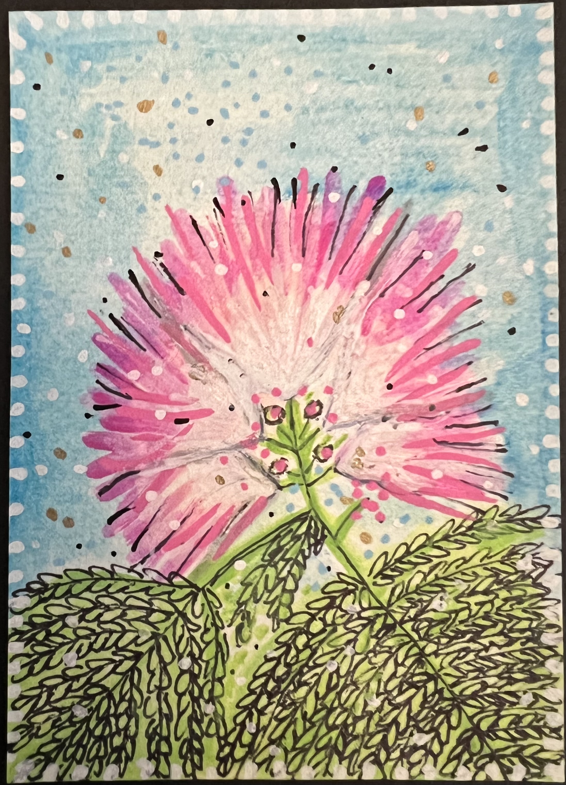 I received a beautiful ATC today from @AIMR for my mimosa theme.