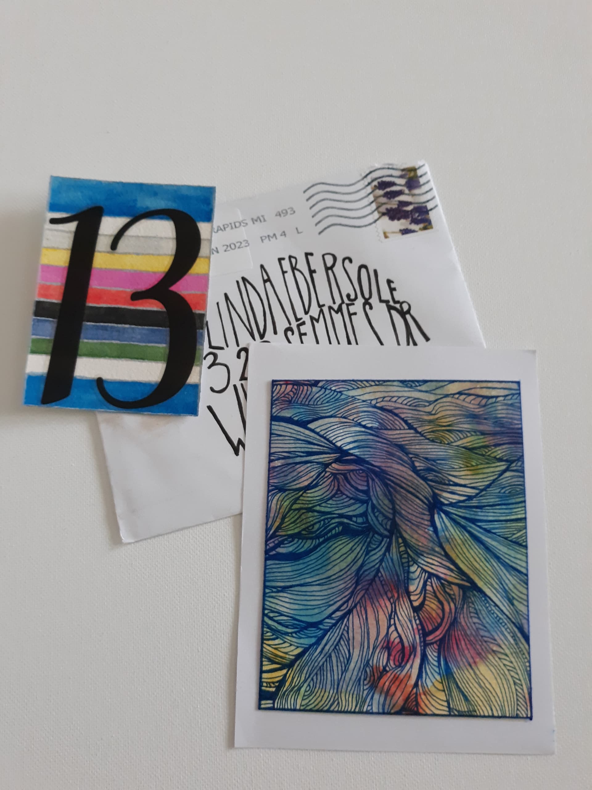 Confession…. I did not letter the number on the atc. I just happen to have sticker numbers on hand so I used them. But after I sent it I totally admonished myself for not free handing it. Why wouldn’t I?!?