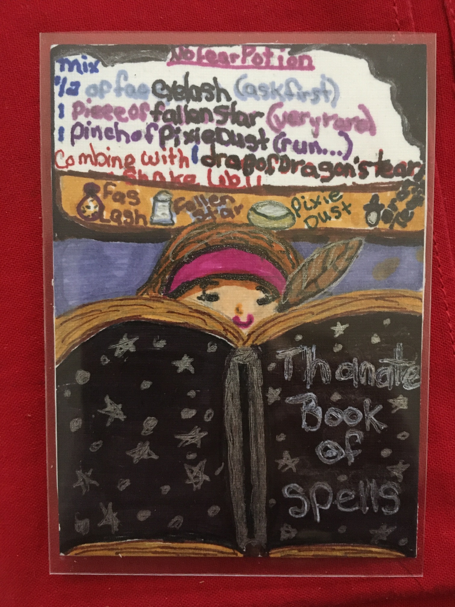 I love that it is @thanate’s personal spell book, and @juju has chosen such wonderful, fanciful spell ingredients. The person behind the book looks so happy, too. Very cool!