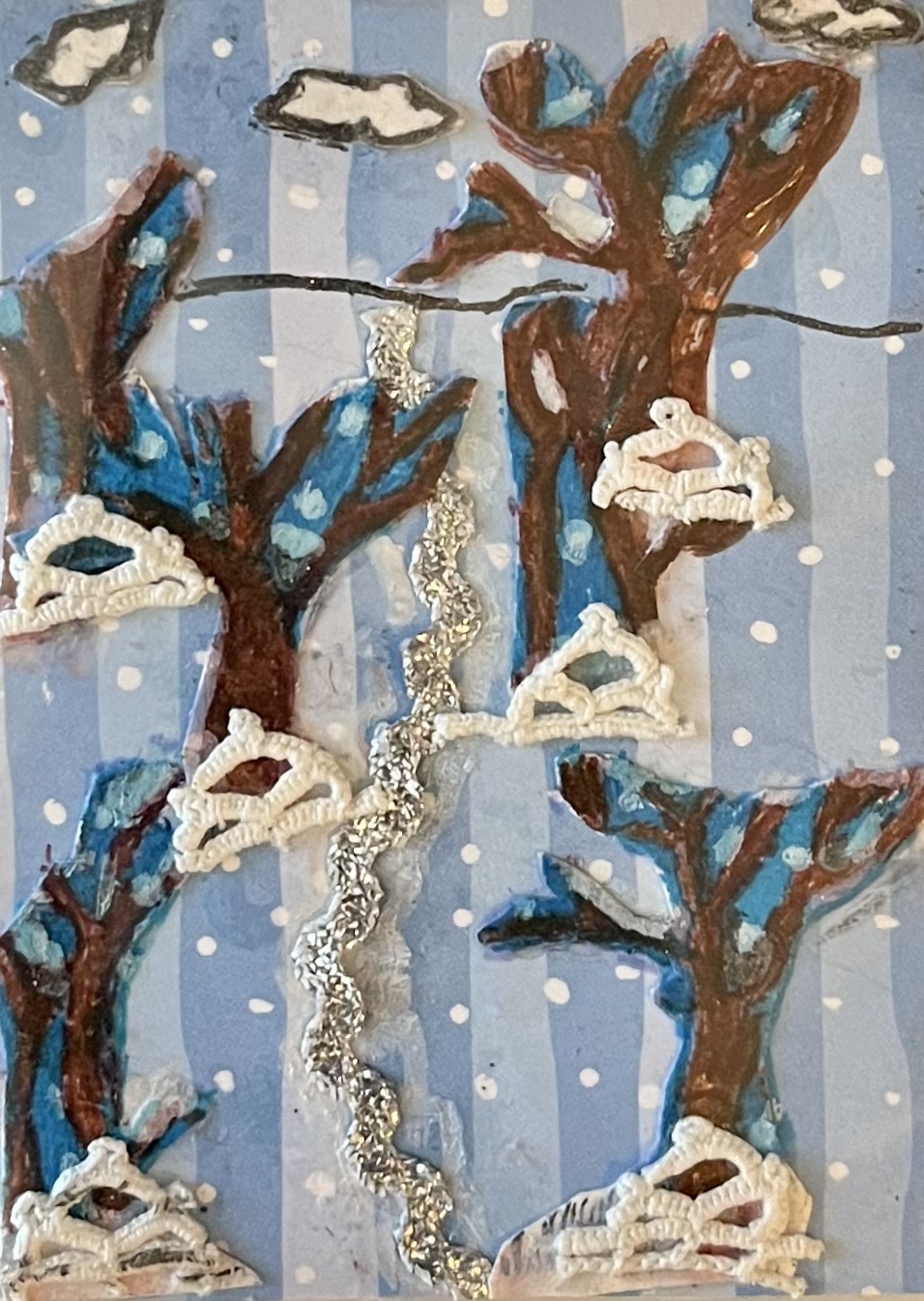 I love all the different textures and elements used to depict snow and ice. Very clever!