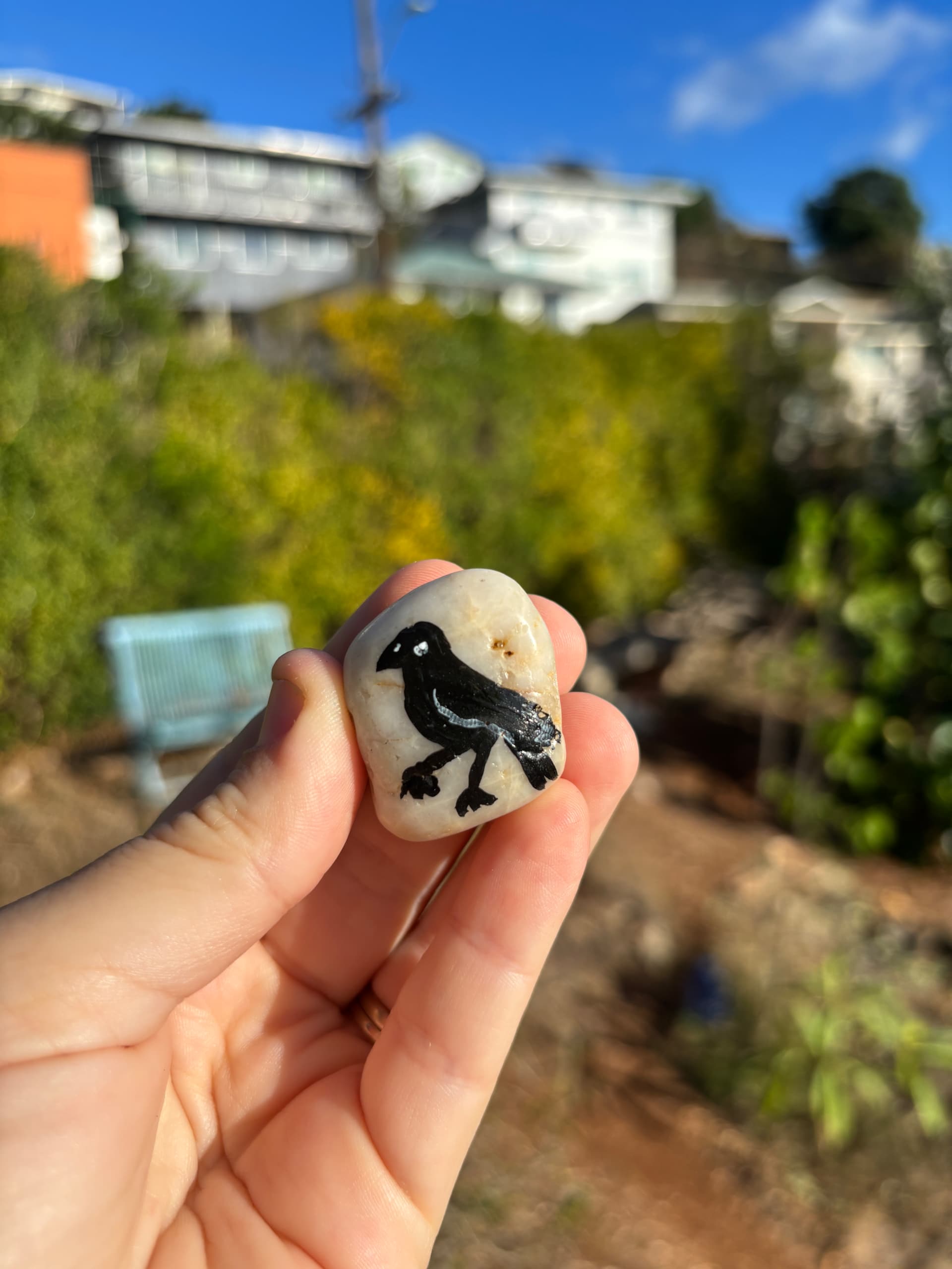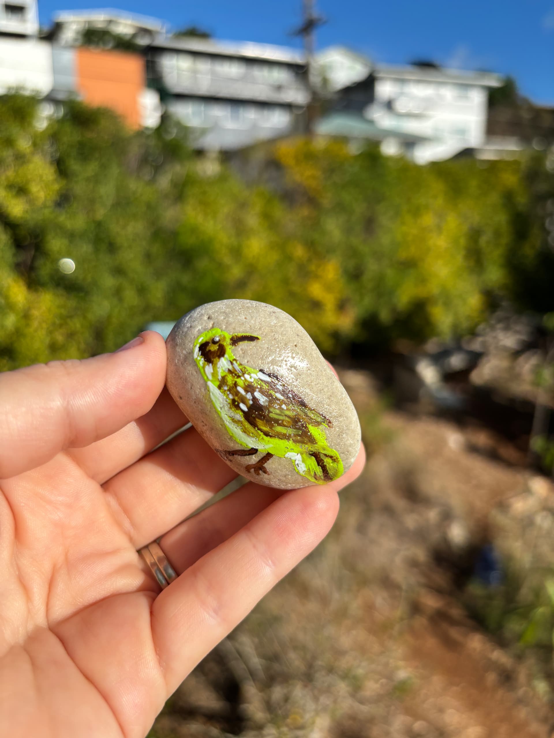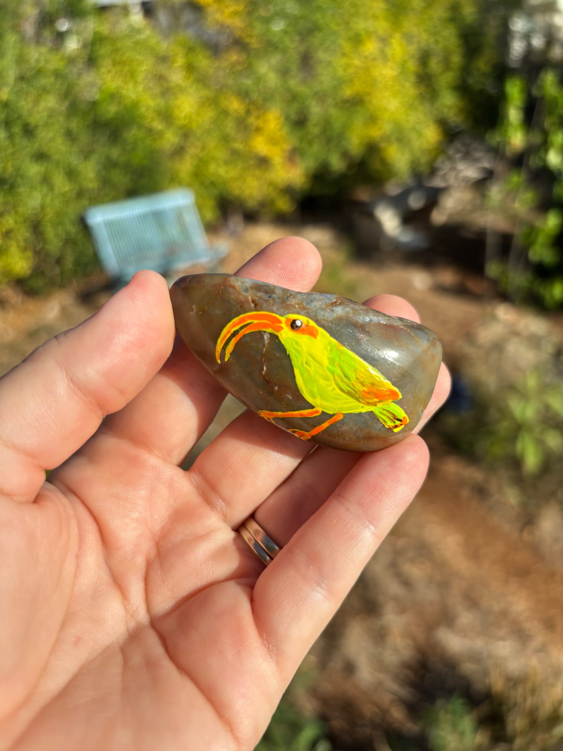 Some of our local conservation groups have created lists too, and I randomly decided I was going to paint a rock for our list of native manu (birds) created by Birds Not Mosquitoes, Birds_Hawaii_Past_Present, and Aloha Post, and is mostly on Instagram. (The calendar/list can be found here.)