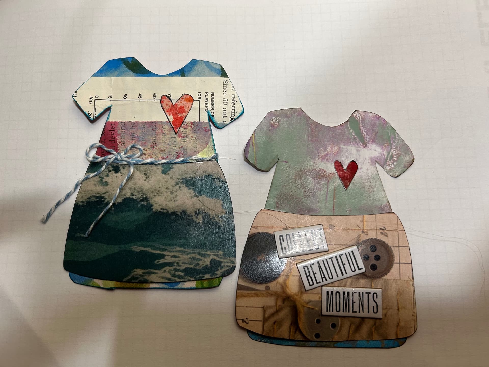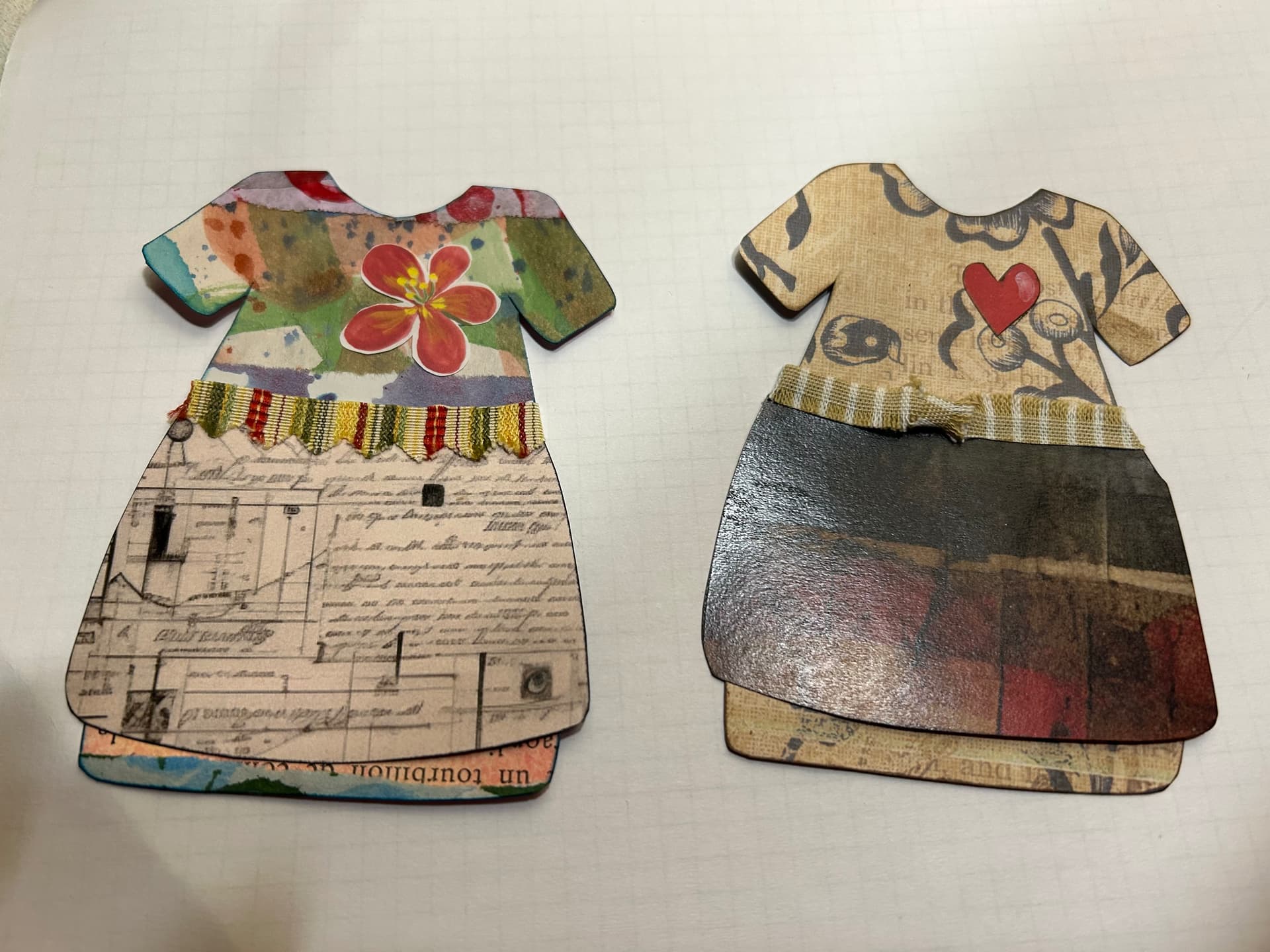 I used the fronts of old cards, some ephemera, and a notebook cover as the fronts. I trimmed them down and rounded the corners. And covered the backs with plainish paper that can be written on.