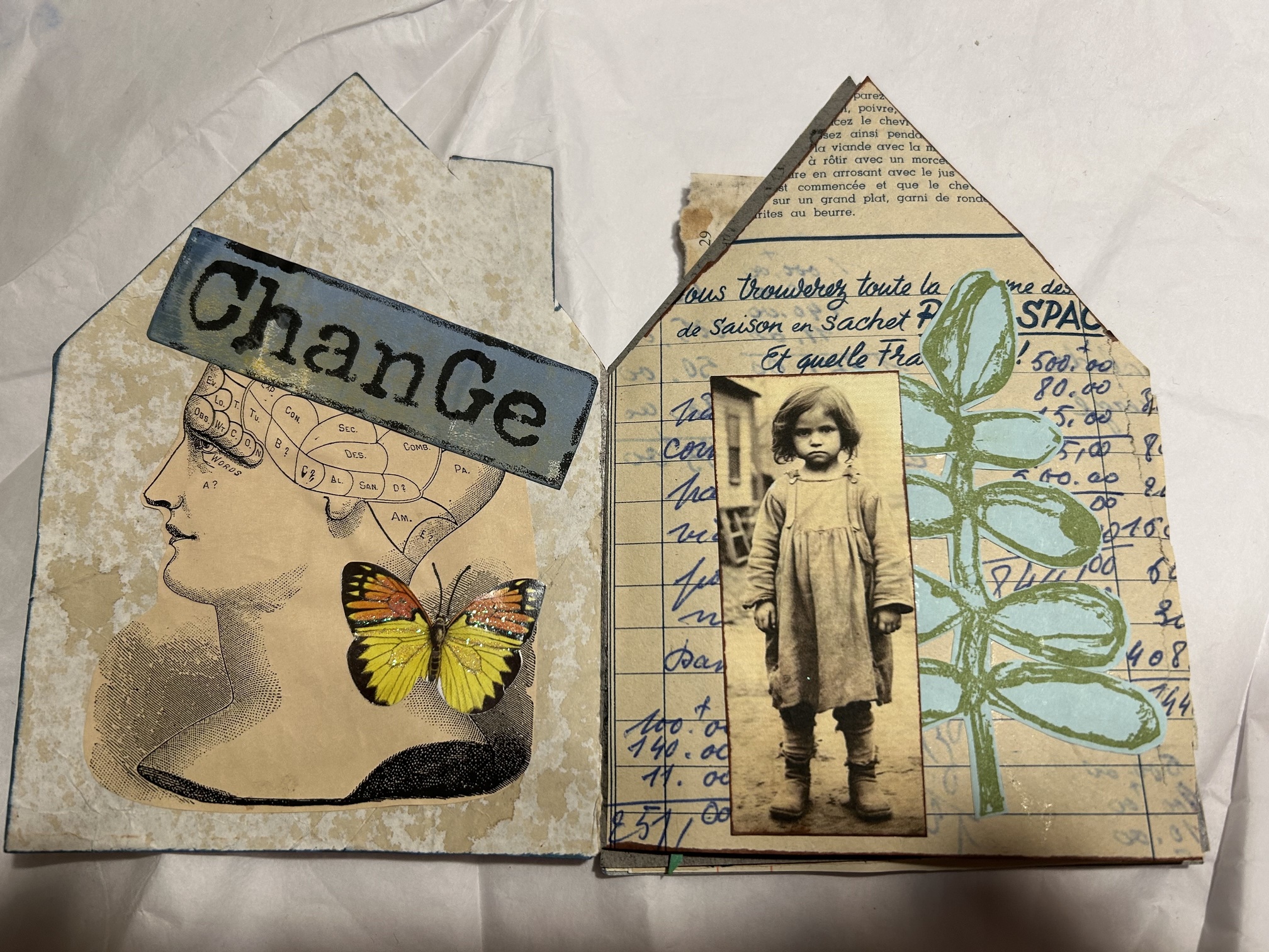 I found a book about how to make house-shaped books, which I gave to my bestie, but I copied the template before gifting. This will be a vintage-y theme.