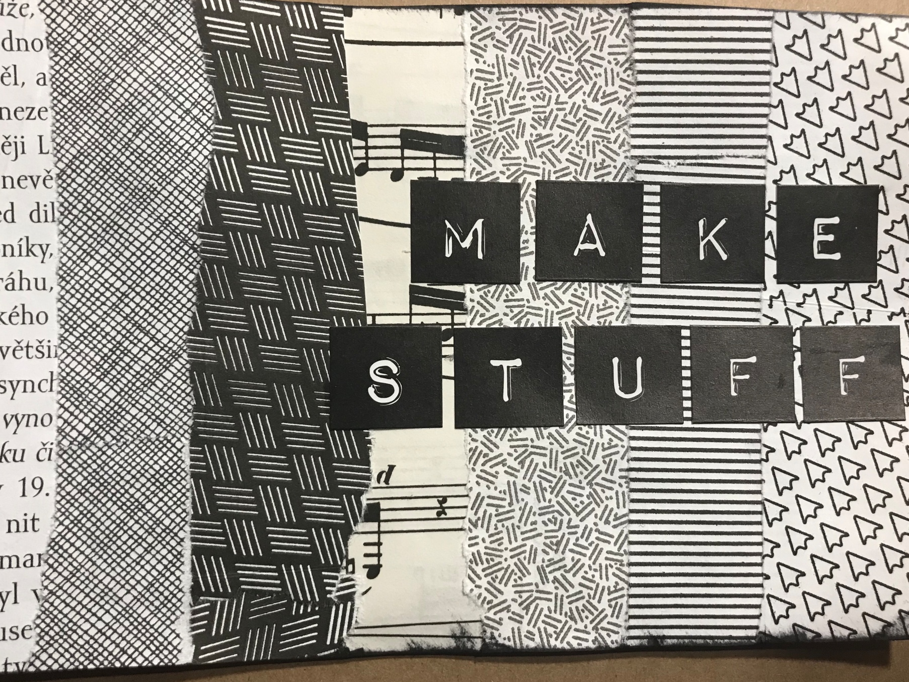 - instead of scrapbook paper, use any image/graphic from a magazine or book (most gets covered in paint)