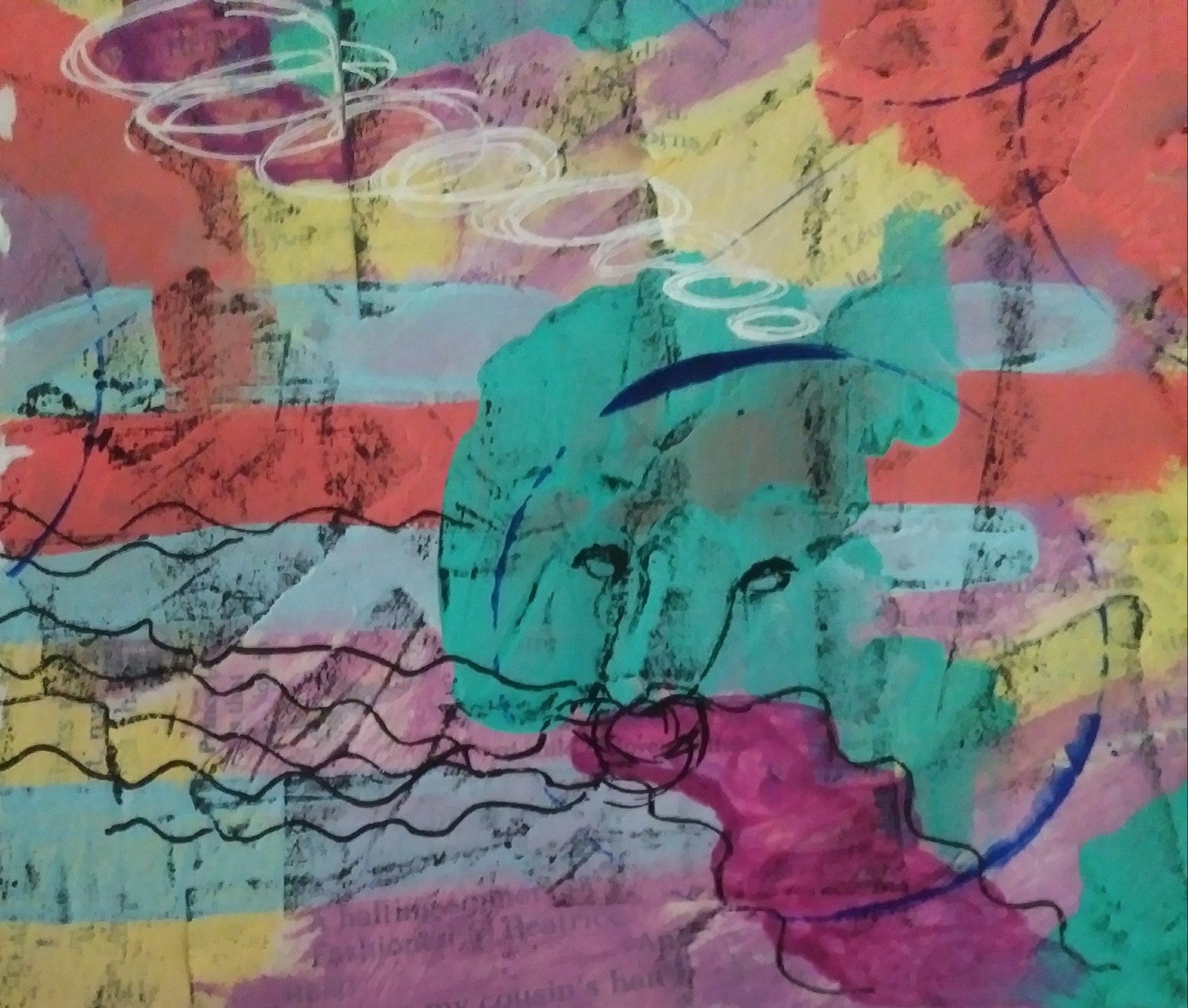 I will probably cut out the face and scrap the rest. These colors do not speak to me. But I loved seeing everyone and arting with y’all. We will have to do another!