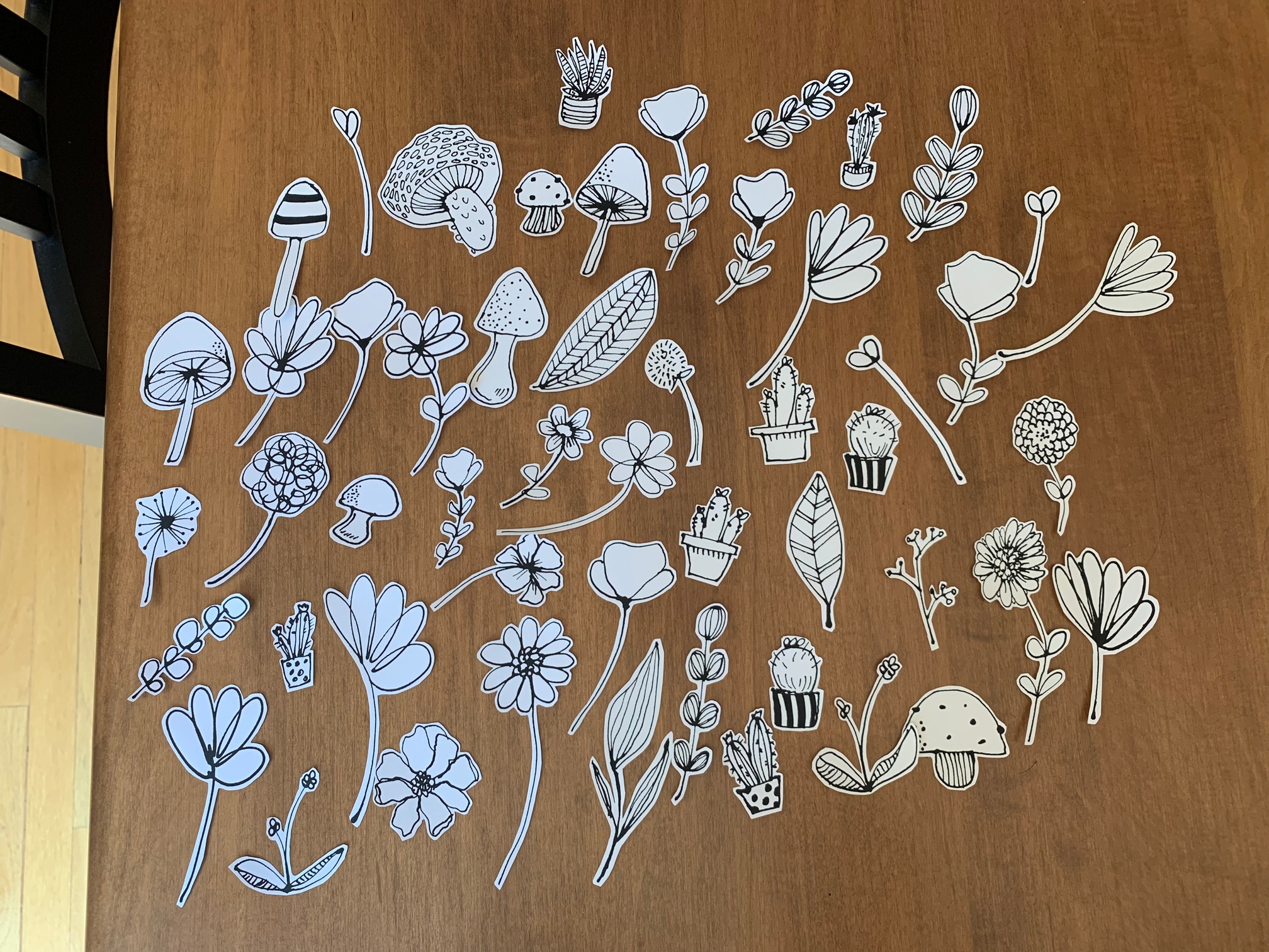 I’m definitely going to have to make some mushrooms & dandelions, and for some reason I totally forgot how to draw a cactus while we were zooming, so these will make good models for me~~