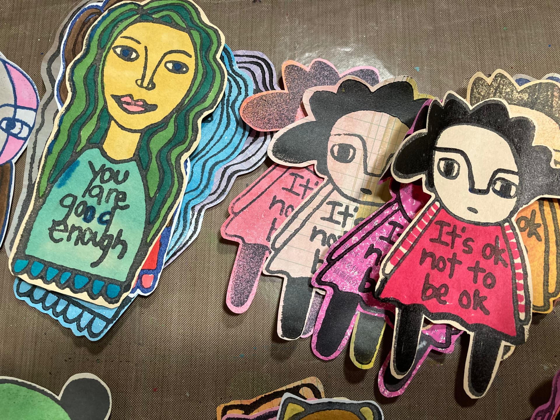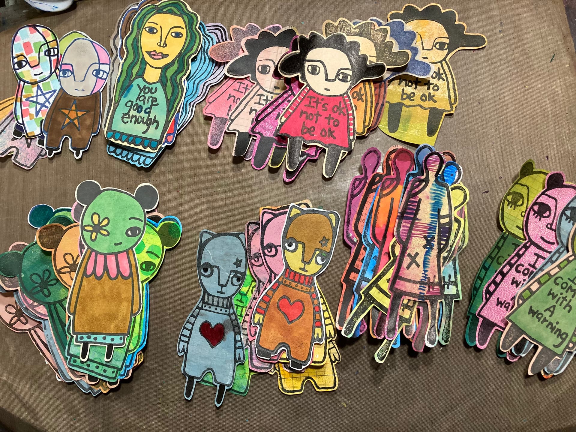 I had a 3-hour zoom on Saturday morning so I cut out all dolls and critters I stamped.