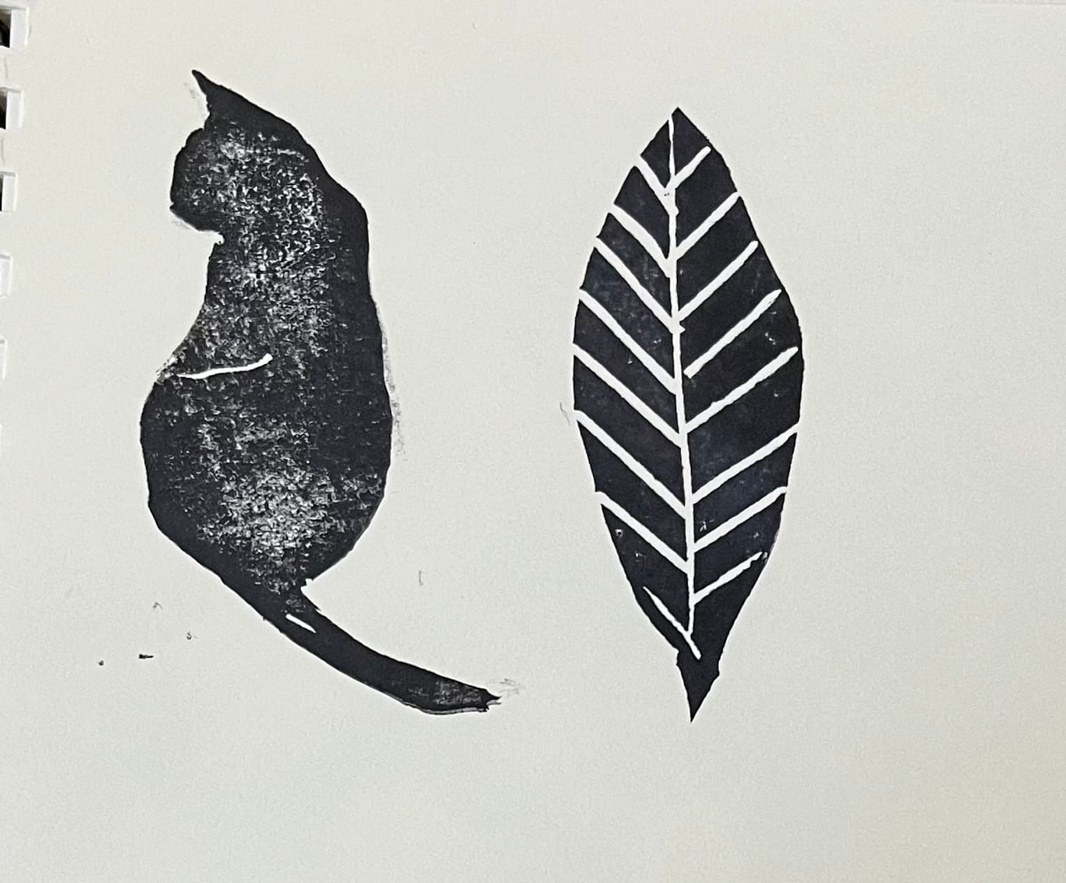 I signed up for the Carve December Workbook class with Julie Fei-Fan Balzer which I think is the only reason I’ve gotten this far. We made a workbook and did a bunch of prep in November, including brainstorming ideas, so on each day I already have a pretty good idea what I want to carve before I ever sit down. So far each day has only taken 20 min or so between carving and printing.