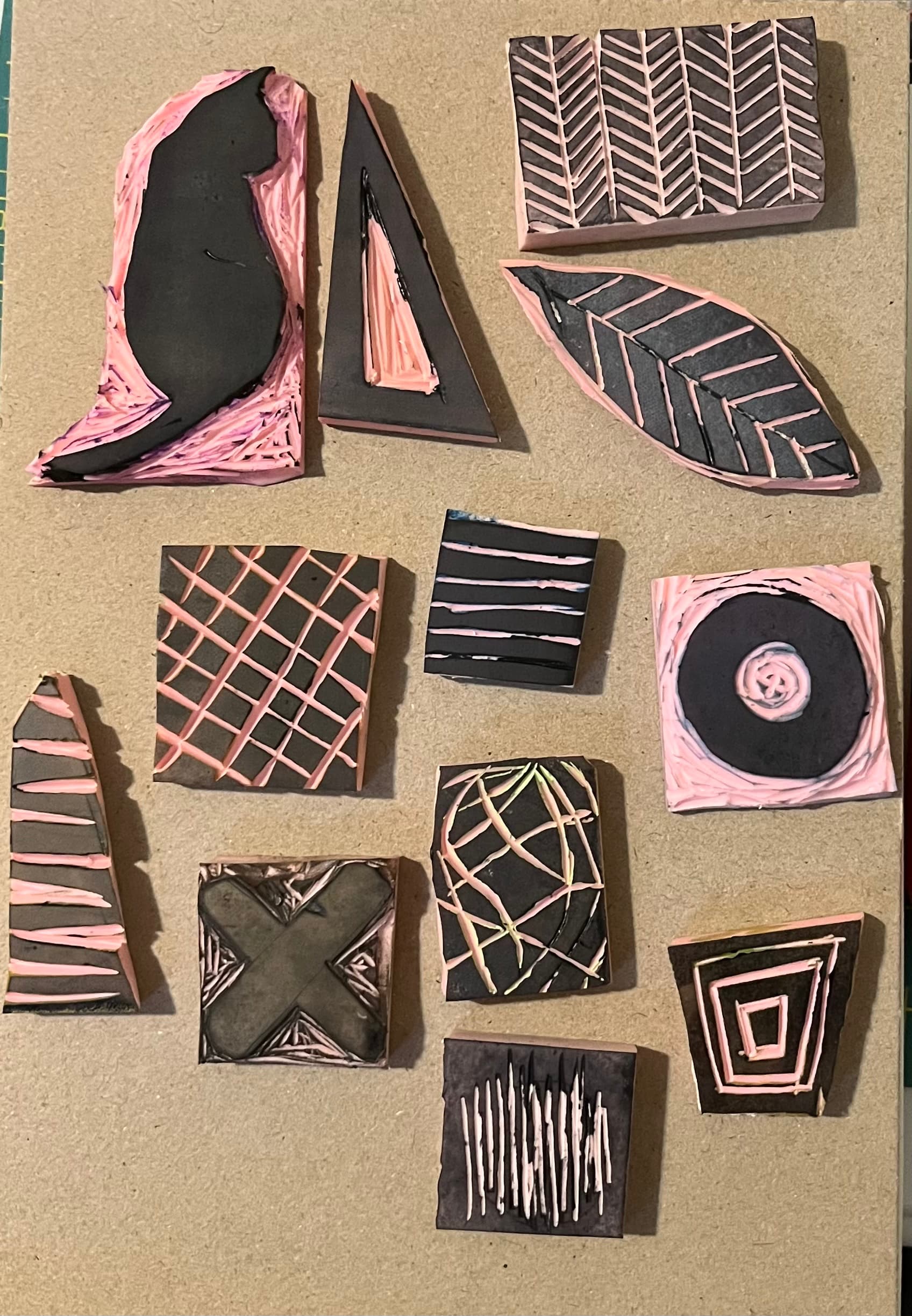 I don’t do well keeping up with doing something every day but I was able to carve some stamps the past couple days. nothing fancy and I didn’t use any prompts. My goal was to use up some weird shaped random leftover pieces of speedball I had on hand.
