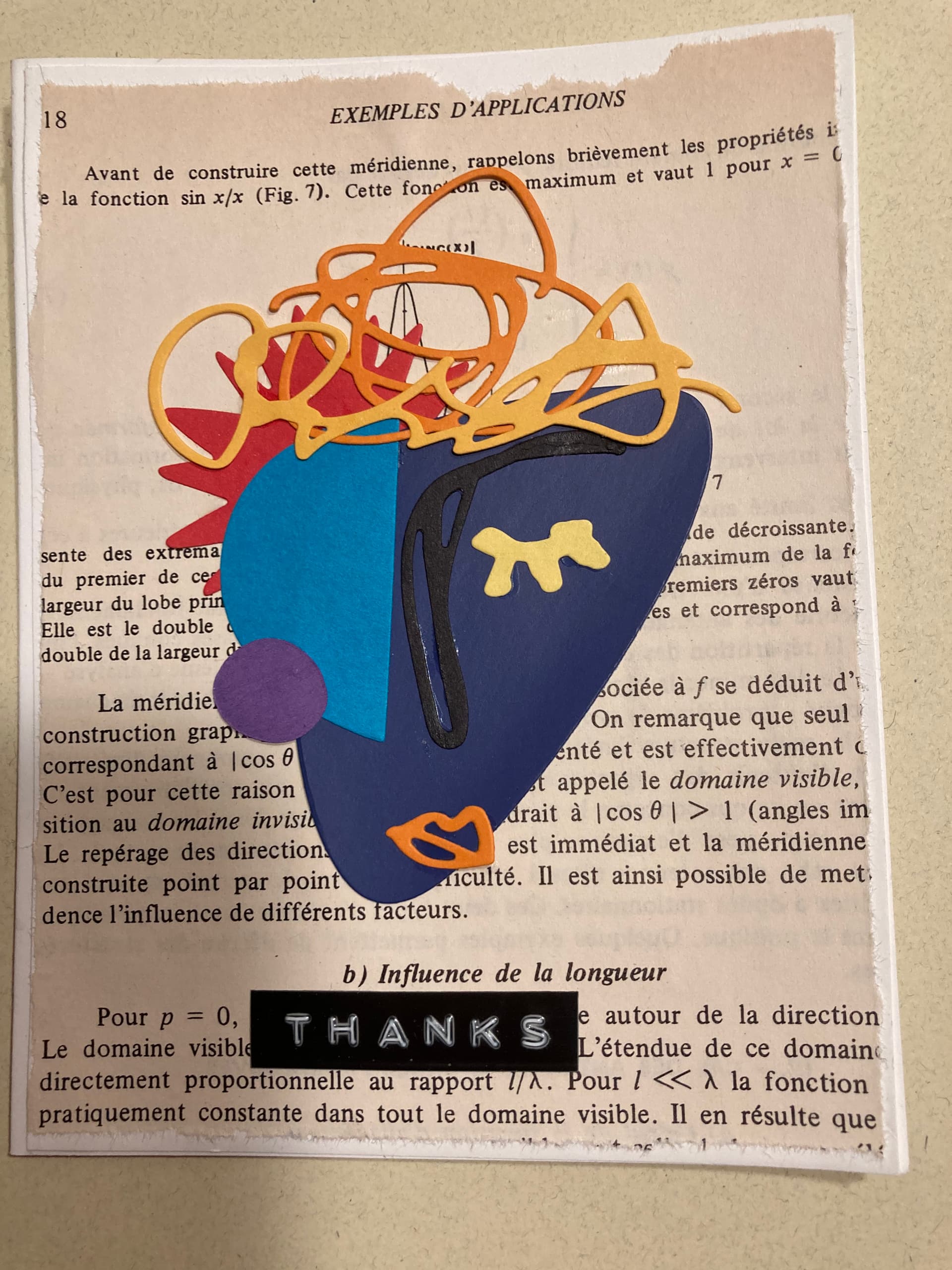 These are on card stock, background is a French math book. I should have edged the small pieces but I just wanted to finish some cards.