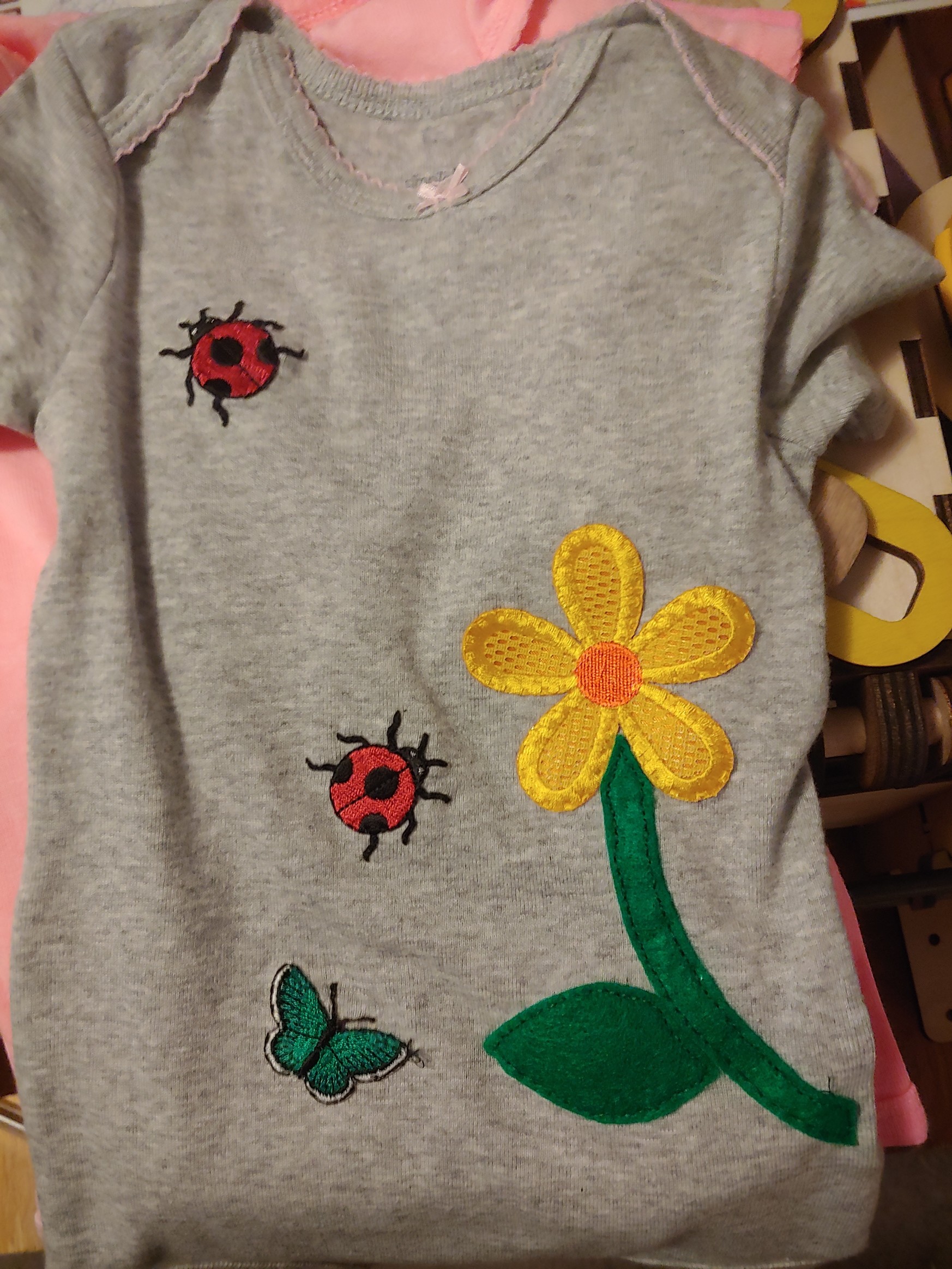 I wanted to make something cute for my niece so decided to spruce up some onesies (can you ever really have enough when they’re tiny?). My son used to like adding patches to his clothes, so started with raiding the leftovers, then added felt to some. One was all felt 'cause robots.