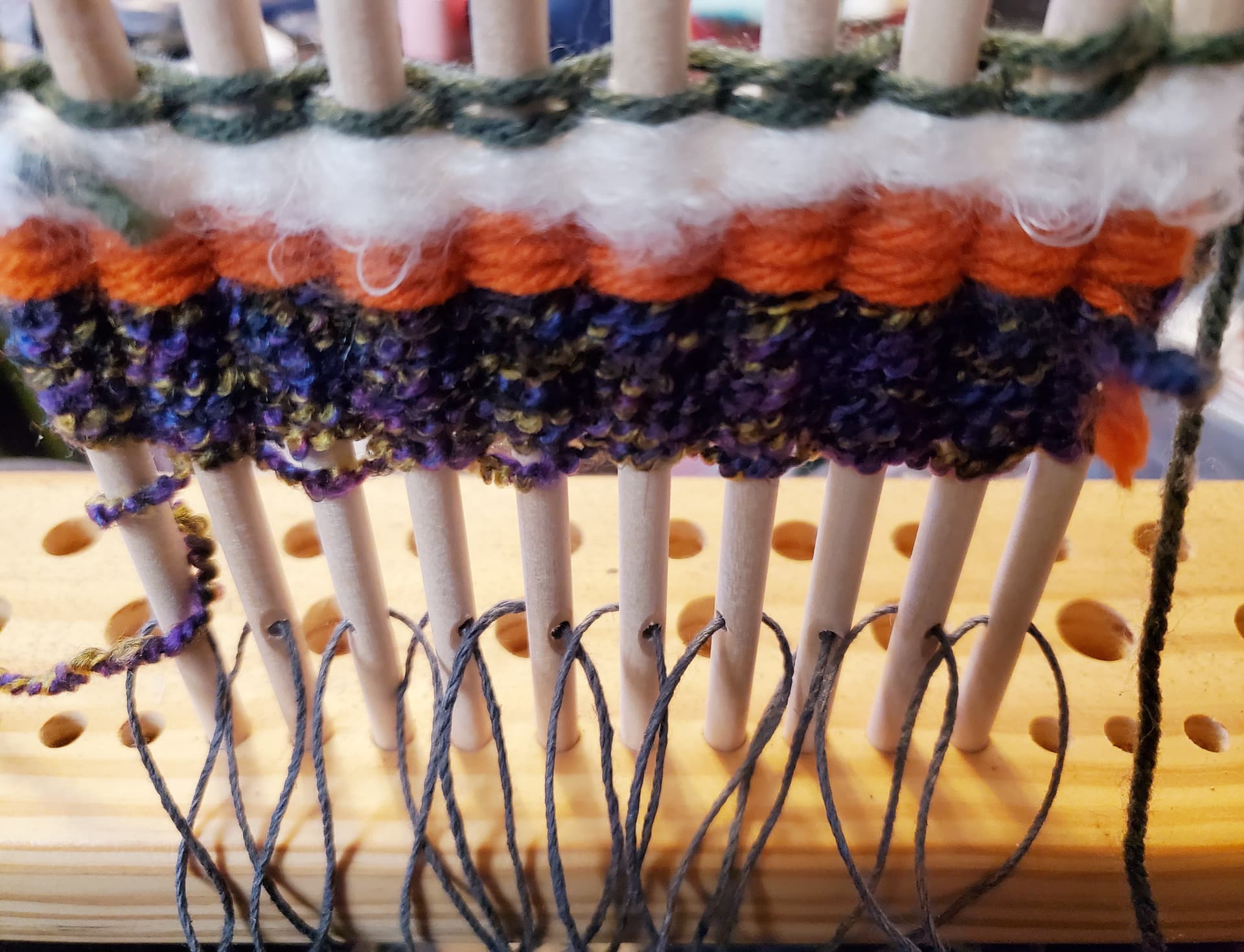 Oh nice! I like seeing the different angles of it. It’s funny from further away the purplish at the bottom looks like punch needle. Peg loom! I haven’t seen that before and now I need to go look it up. I have a few things to weave and I was thinking about in elementary school when we used a piece of cardboard with twine on it. It would have worked, but this looks intriguing. Thanks for creating a separate post about it!
