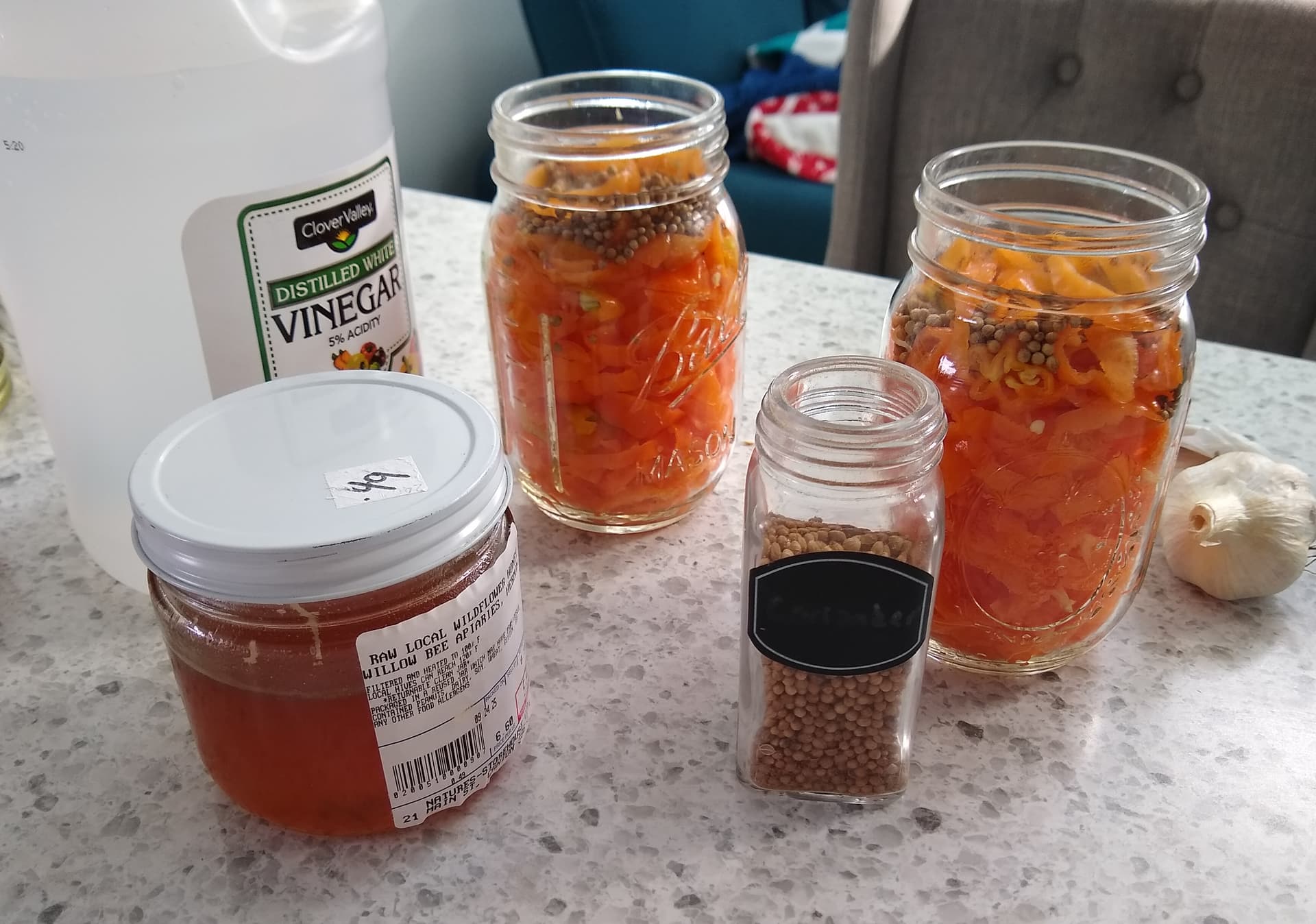I still had a ton of Habaneros, so I decided to try this recipe for pickling them. But I opted to add coriander seed, and also processed them to pickling standards to be shelf stable.