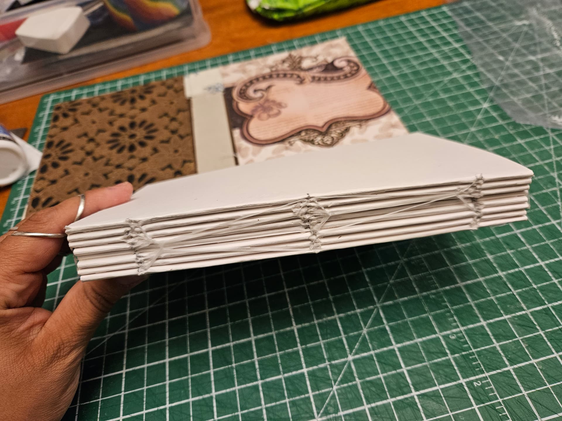 After I finished filling up my sunflower memory book, it was time to handbind another book for the same purpose. This time I put a lot more pages in, so it’ll last longer.