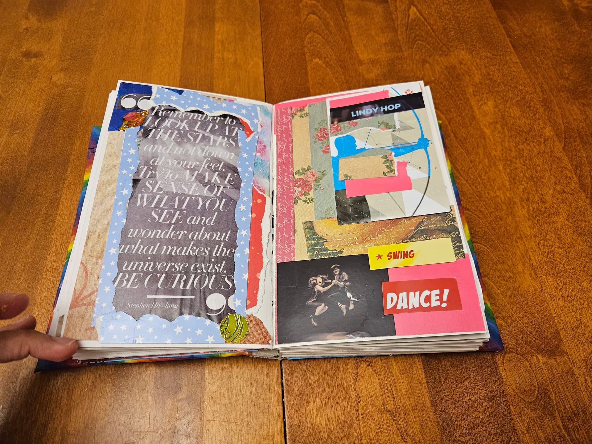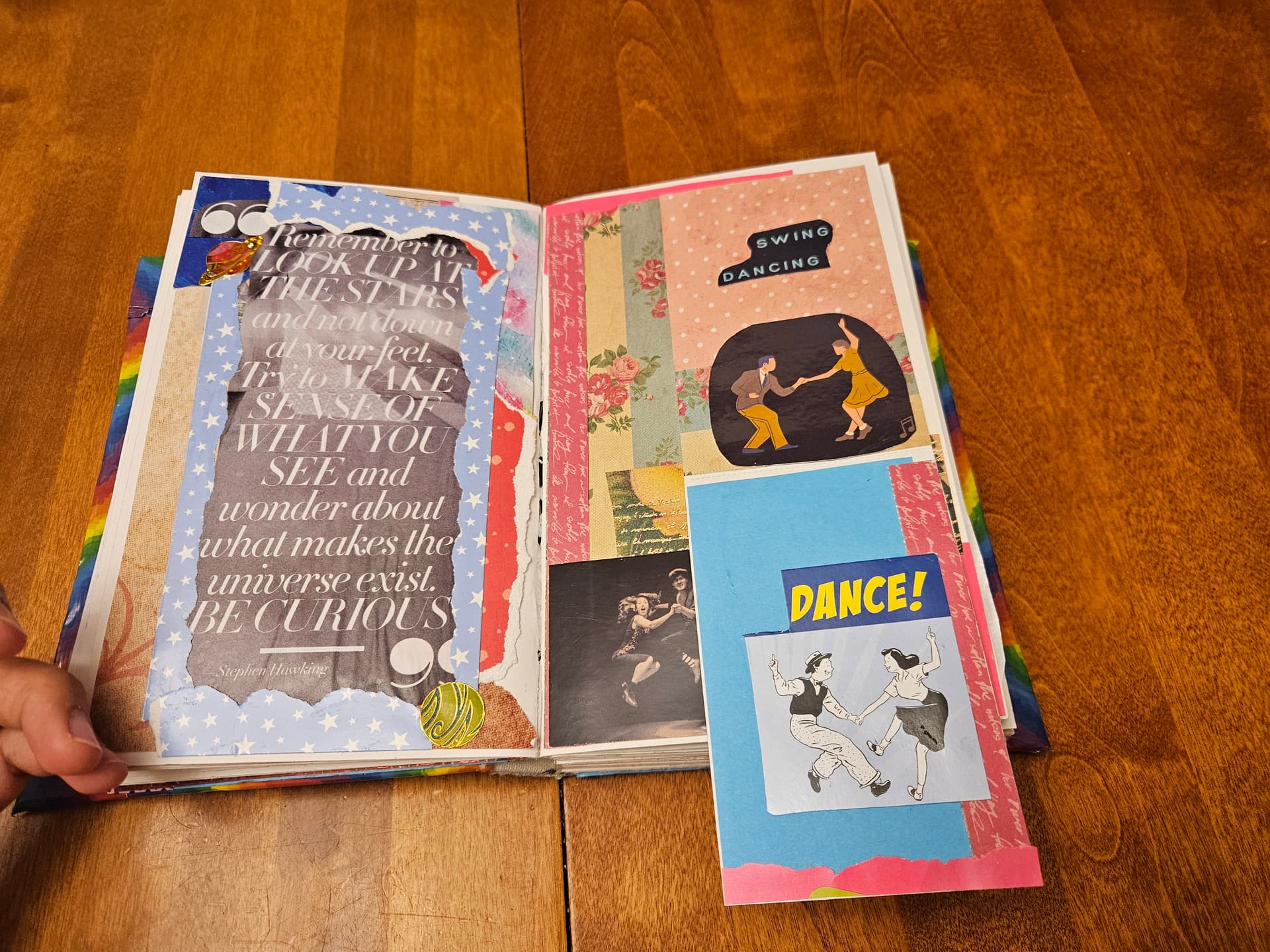 I covered the inside of it in paper scraps, fabric stickers, and more stamps ![]()