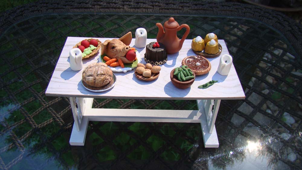 The piece is a courtyard porch and probably meant to have lots of flowers and outdoor furniture but I thought a princess and the pea bed would be fun to make. Here’s a detail of it.