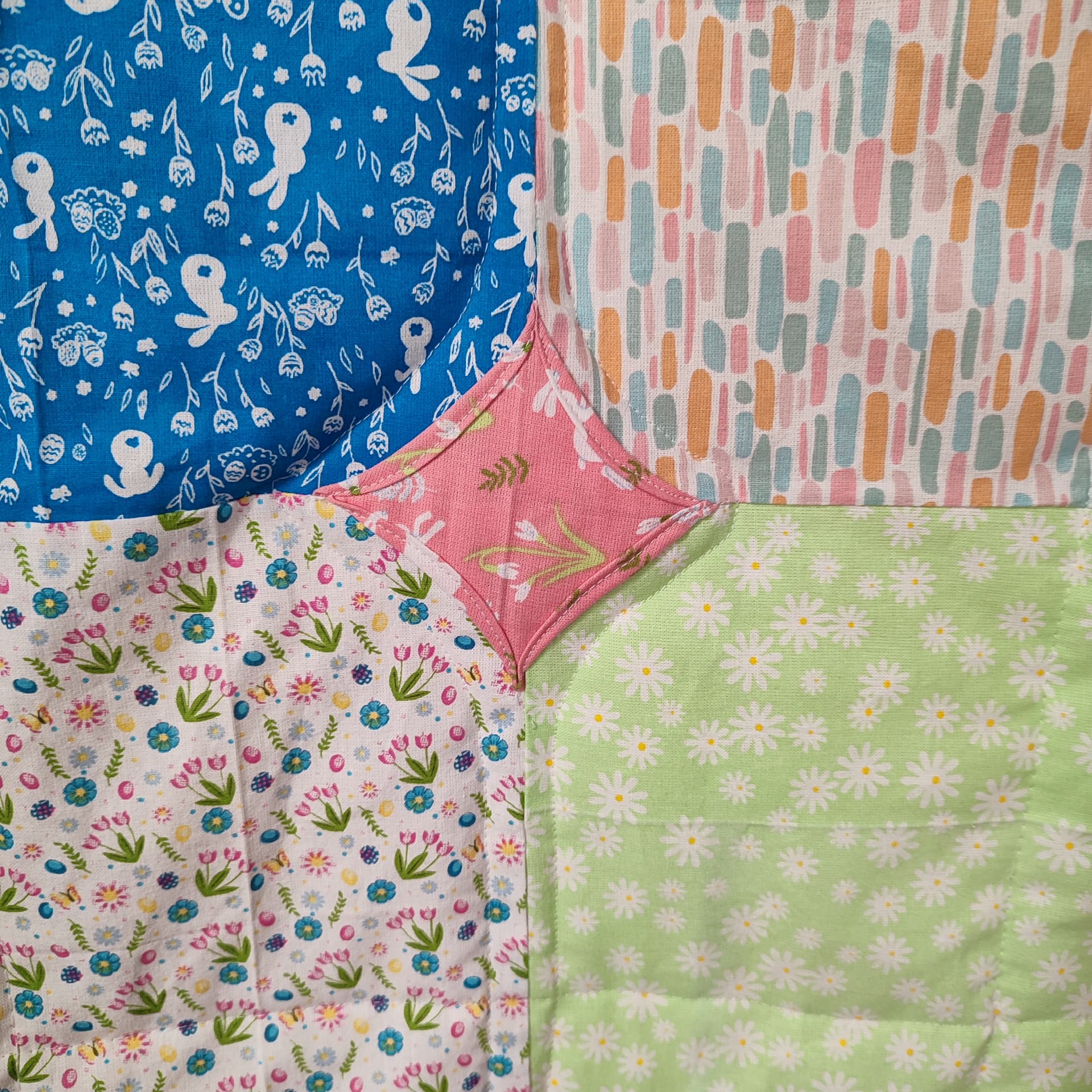 This quilt is so fresh and cheery. Reminds me of the 9 patch quilts my grandma made for each of the grandkids using feed sacks. Mine wore out and I lost it in a move back in my twenties.