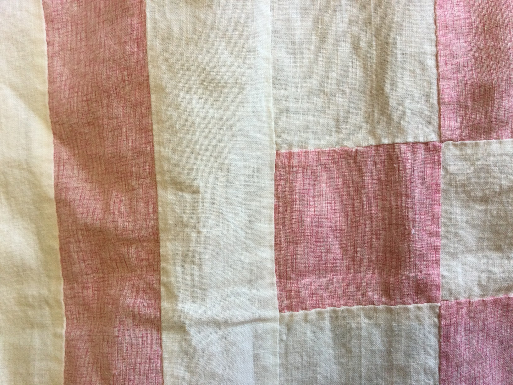 Here is the quilt top I want to finish off. I found this in my father’s US Air Force trunk, after my parents’ passings in 2014. It is at least from 1950, possibly as early as 1920s. No markings or labels/tags of any kind. I have no clue who made it, if it is handmade or purchased commercially, or why he had it! It so NOT like my Dad to have something like this.
