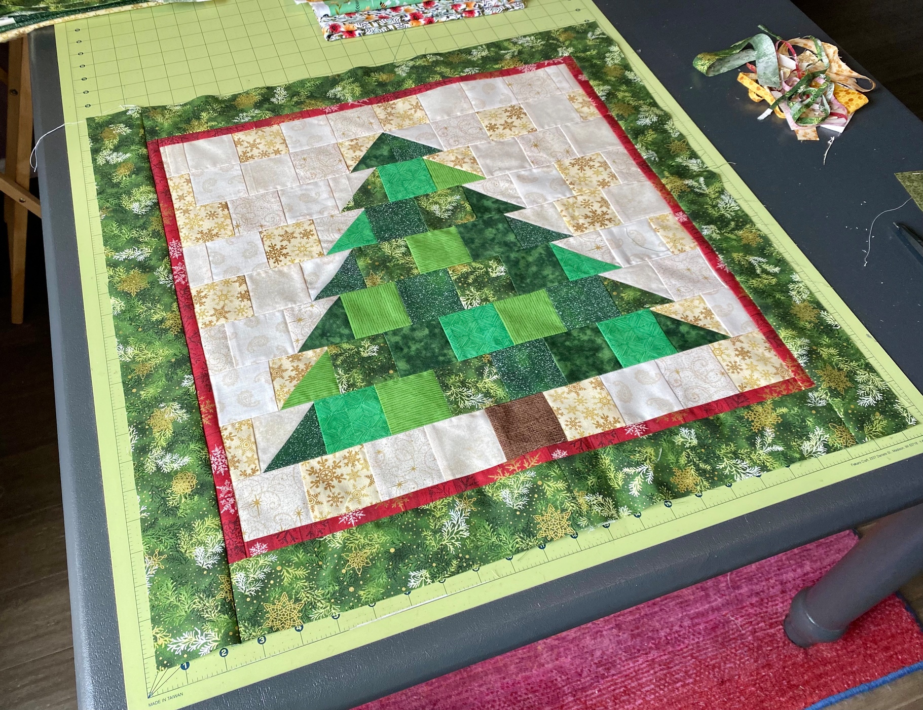 I finished this for my sister, it was a kind of an obligation quilt rather than being made truly from the heart (I’m sure you know the difference). Plus I was struggling with having thrown my back out Vs getting it done for Christmas. So the corners are seriously wonky. But it turned out pretty nice despite all that. And she is a maker, so she will appreciate the work that has gone into it.