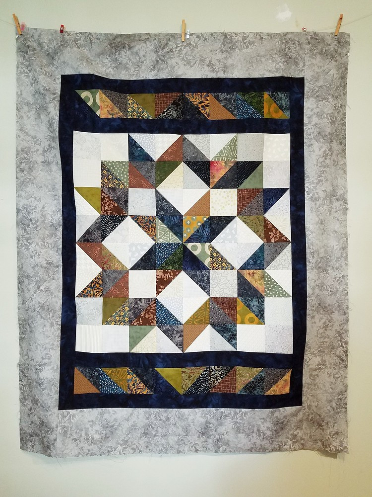 Yes, navy binding. I need to add to this finished top. Maybe adding a wider band between the center and the end HST blocks. I’ll figure it out. It is a great procrastinator excuse.