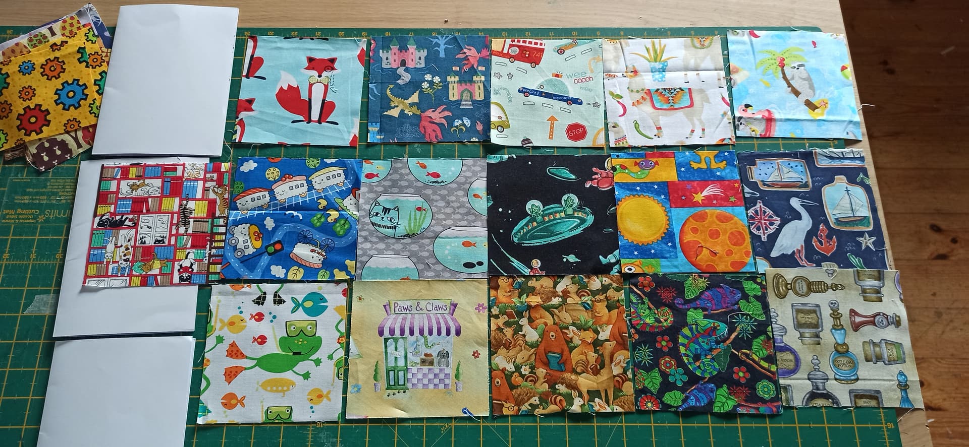 A lot of the scraps I have aren’t really ugly when you see the whole piece of fabric, but the cut up scraps become ugly because the print isn’t suitable. The ones I struggle most with are backing scraps leftover from quilts for kids. I tend to go for fabrics with big, fun prints - the dark blue one has jungle animals. But the scraps don’t really look like anything and the blue background isn’t an interesting colour.