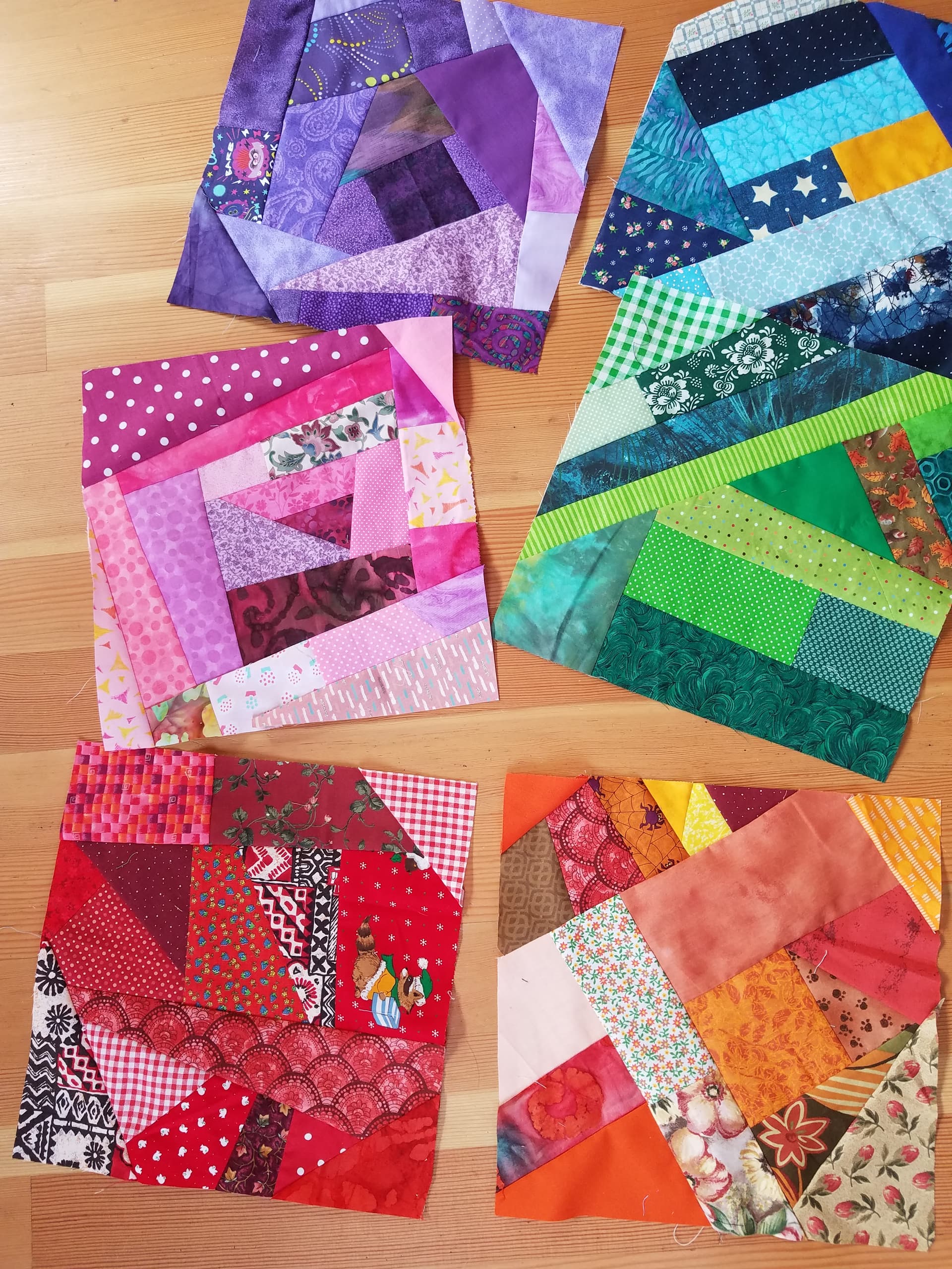 Great scrappy squares! They’re awesome! The upside of not making a dent in the stash is that you have plenty more fabric to make more squares and a bigger quilt.
