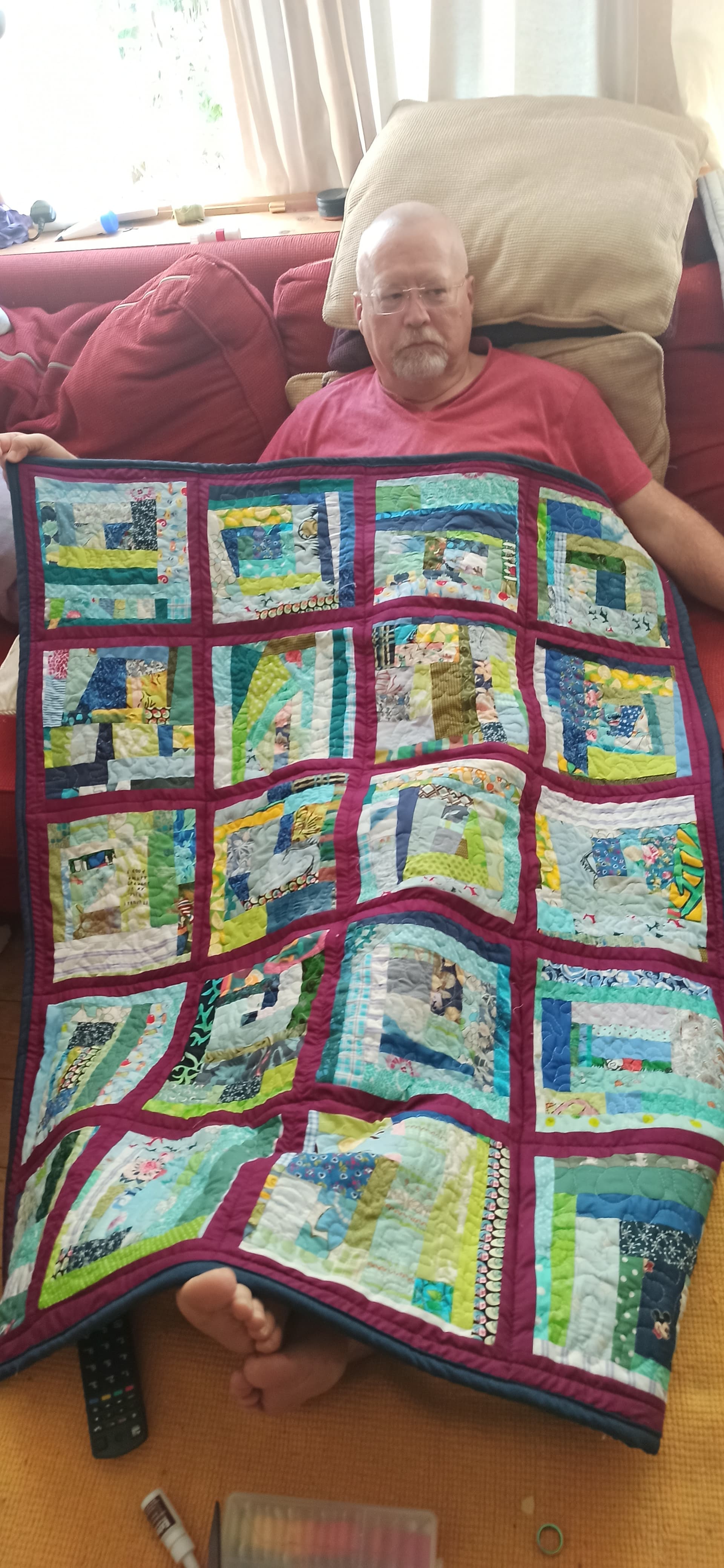Your scraps quilts are such an inspiration. Your “get it done” process is so inspiring and they always come out unique and not as I expect. It is a great size. I am sure your friend loved it!
