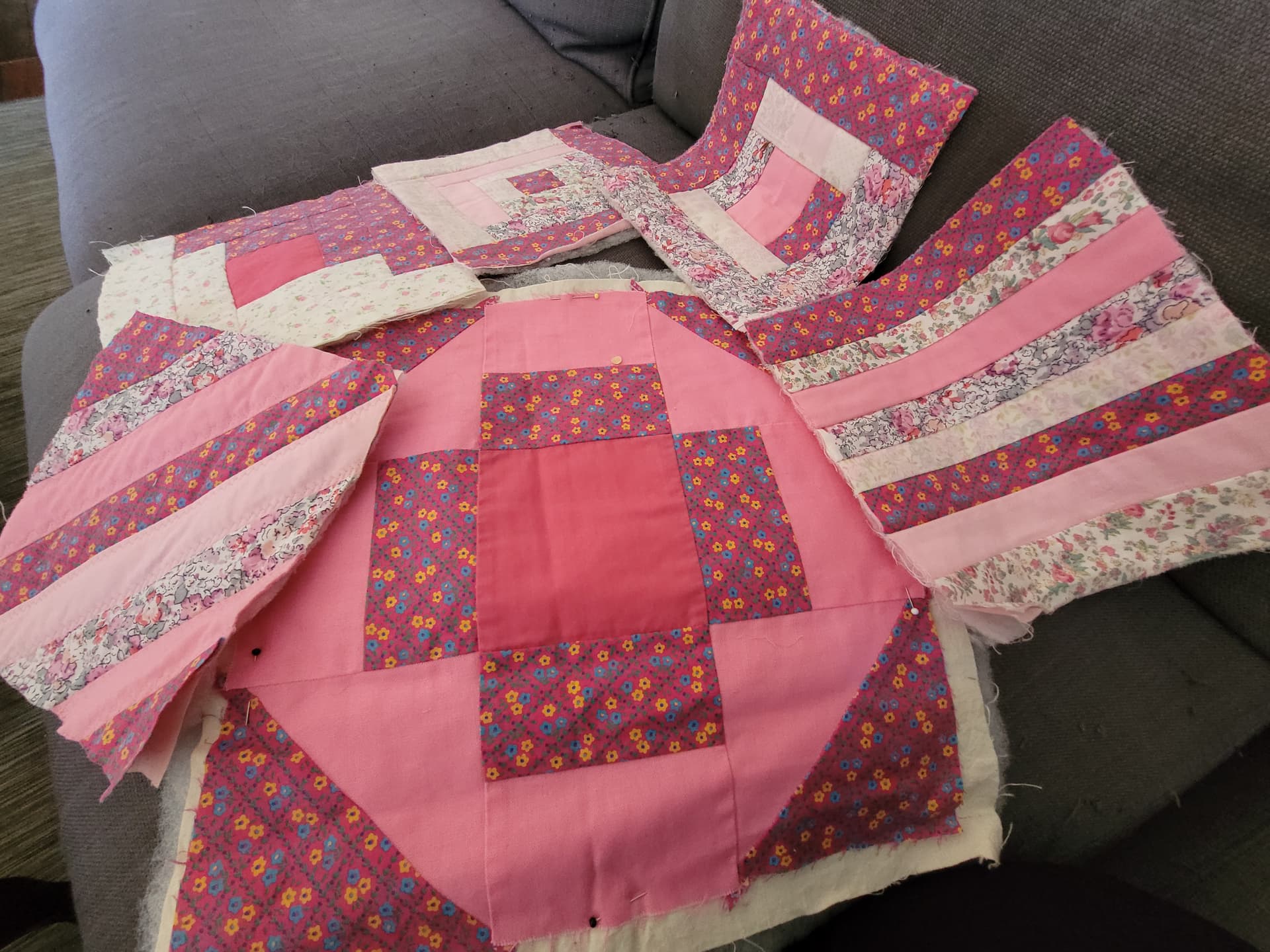 I have also mean meaning to show these cute QAYG blocks that I found in a basket I saw hidden in a corner of my gran’s ‘craft shop’.