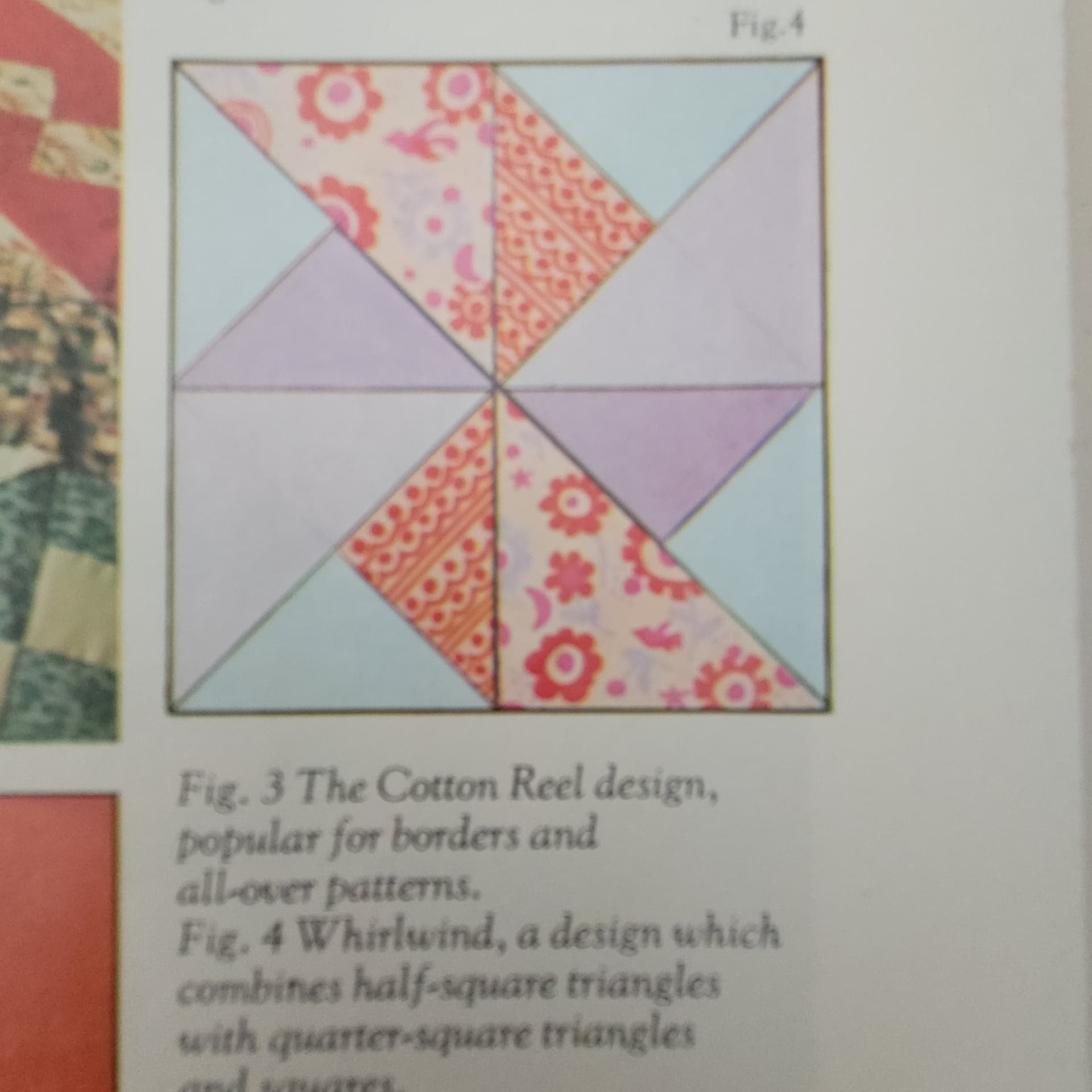 I just googled the ‘whirlwind’ and saw a few different patterns, but one that looked the same to the above. However they have used the same fabric for the pinwheel, instead of different fabrics like the diagram, so give a different effect.