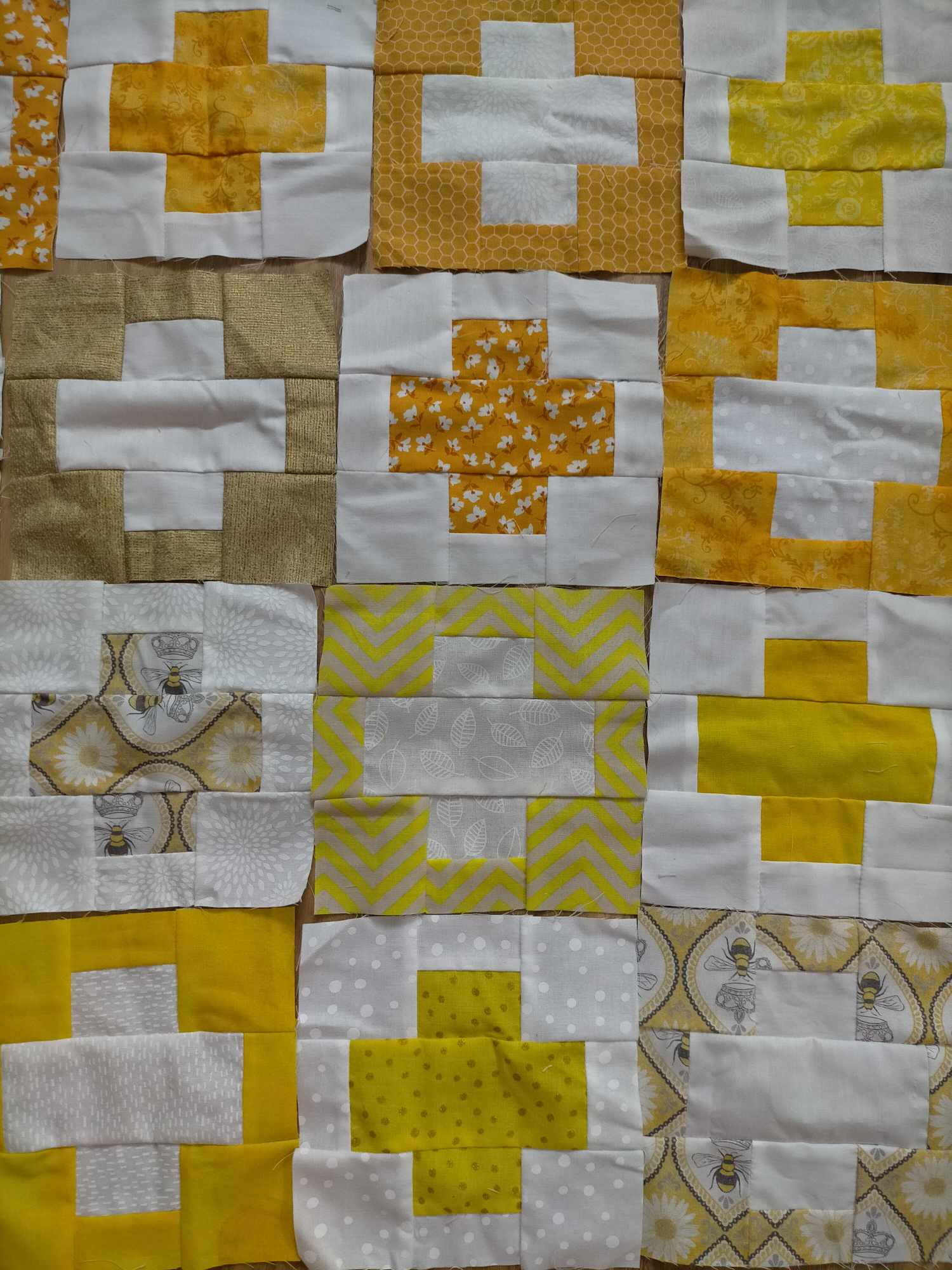 I Mvanrh11, offer scrappy Yellow quilt blocks for Marchs month’s prompt