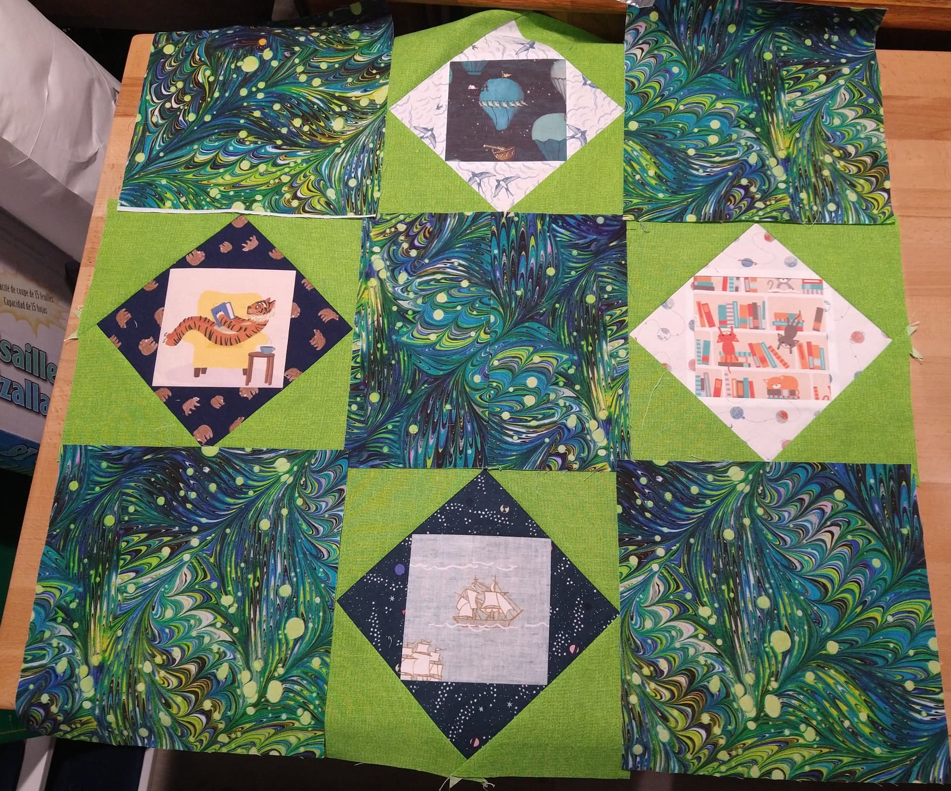 @tendstowardschaos, your I-Spy quilts are going to be a lot of fun! I like the greens and blues. I recognize the cats in the library fabric, the same fabric made it into my latest quilt as well