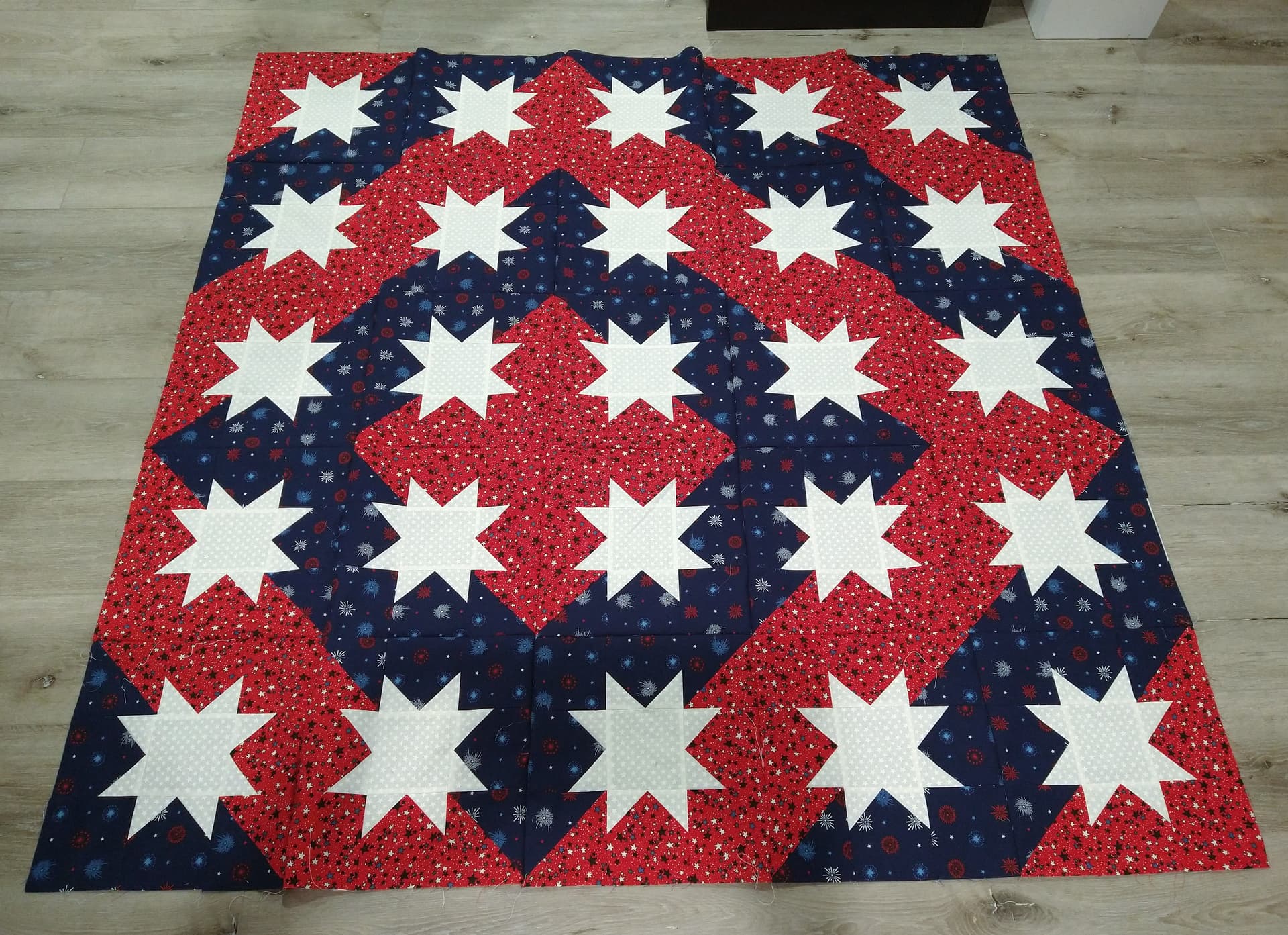 What a lovely quilt top! I like the pattern and it works so well in the patriotic colors!