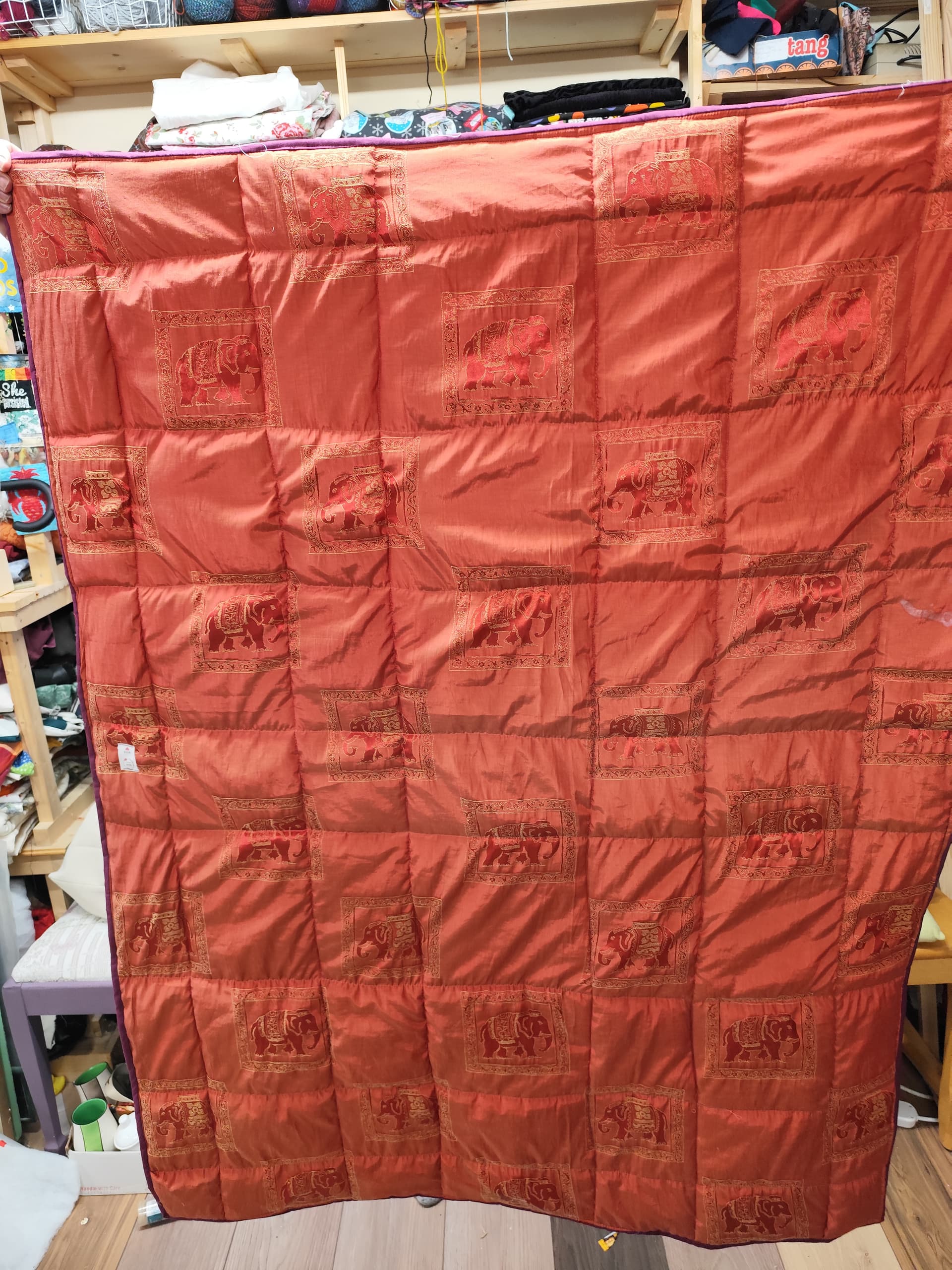 Using this really lovely flimsy that I got in a swap (from Mistress Jennie) about a million years ago. I used a fabric from Sheelagh that she got in India to back it.