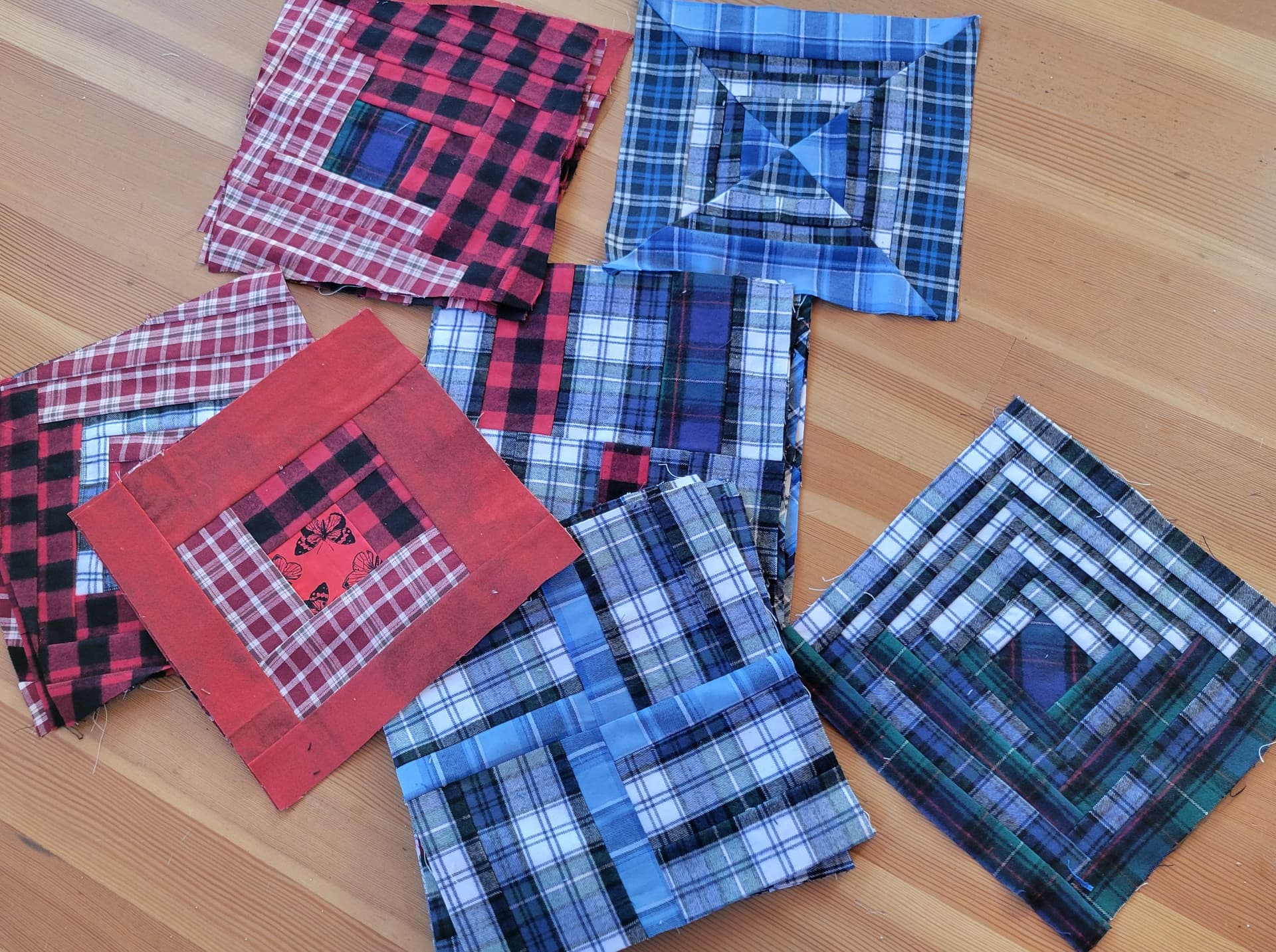 I started with the long strips; some were rather wonky, they are off-cuts after all. I did add in a bit of fabric from my stash. I made 21 blocks. Now I am just left with some of the larger off-cuts and have a quilt top in mind.