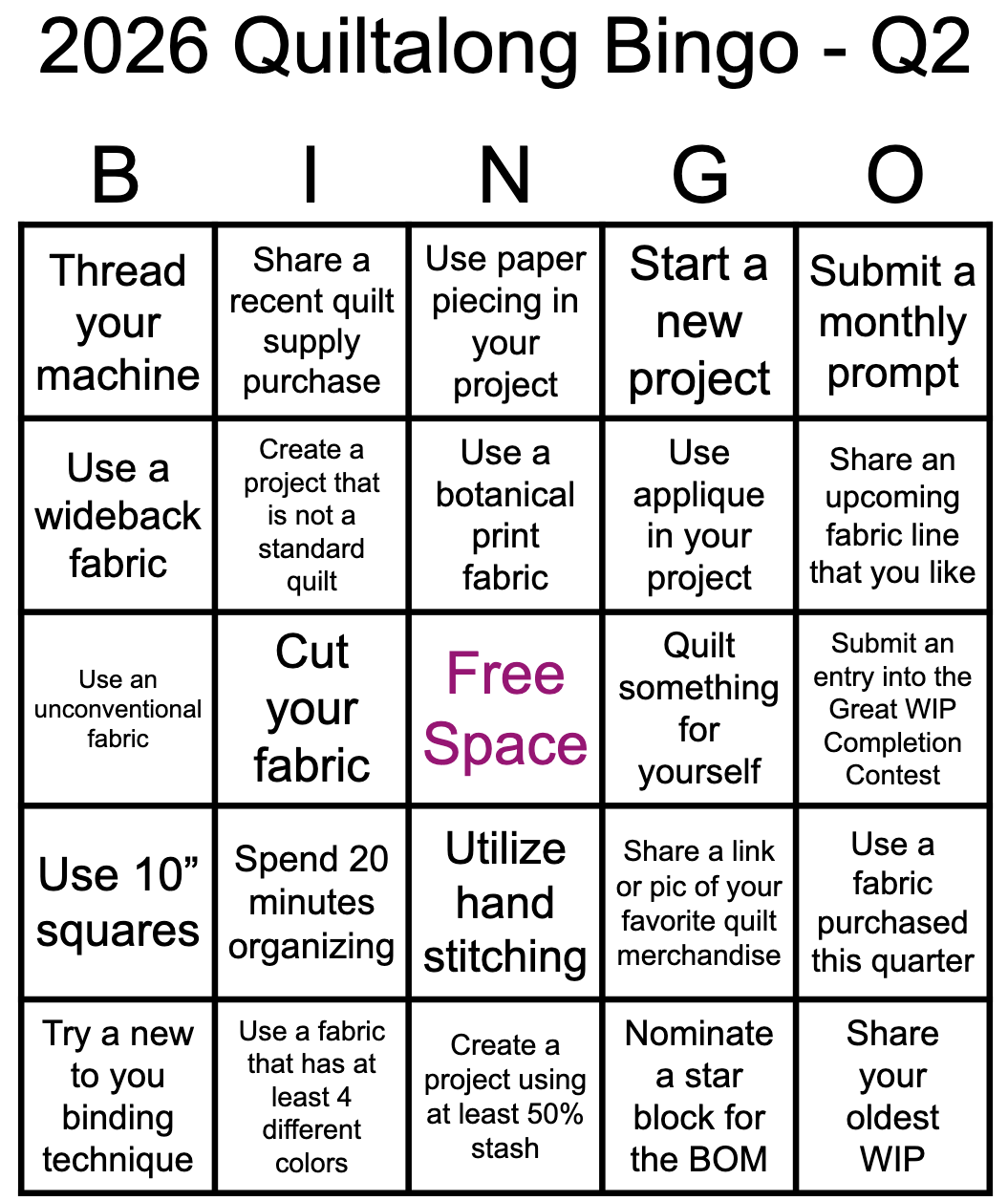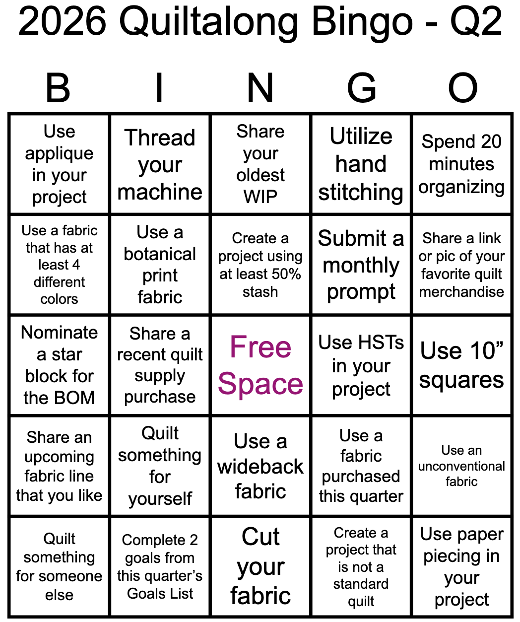 I am determined to get back into quilting and sewing this quarter. I need to work on my list, but I am excited to play this round!