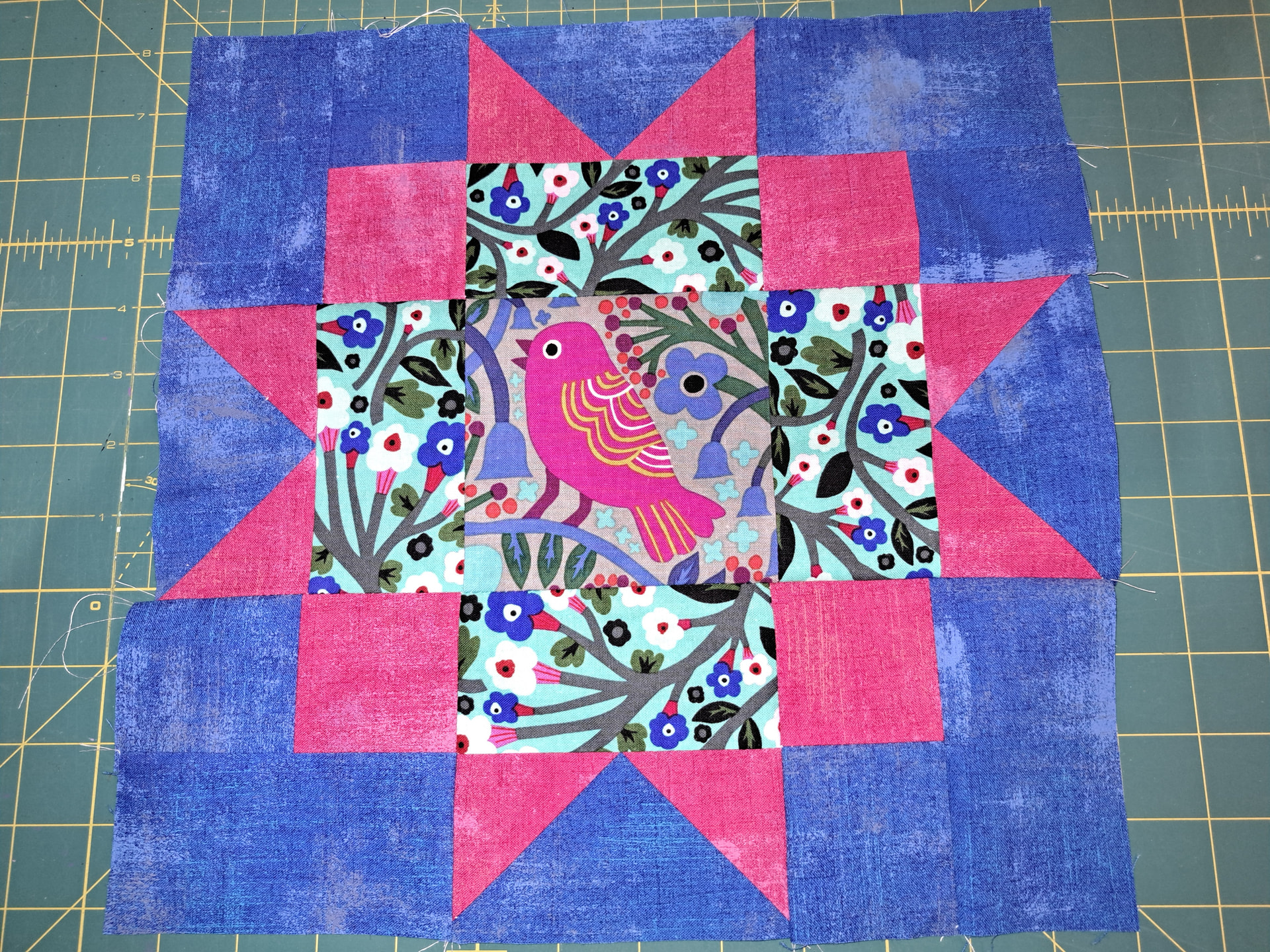 I have two quilts started based on the BOM, and now a third. I’m not sure where this one will take me, but it’s for the birds! I plan on bird and tree blocks to make up the lap quilt. This is the start.