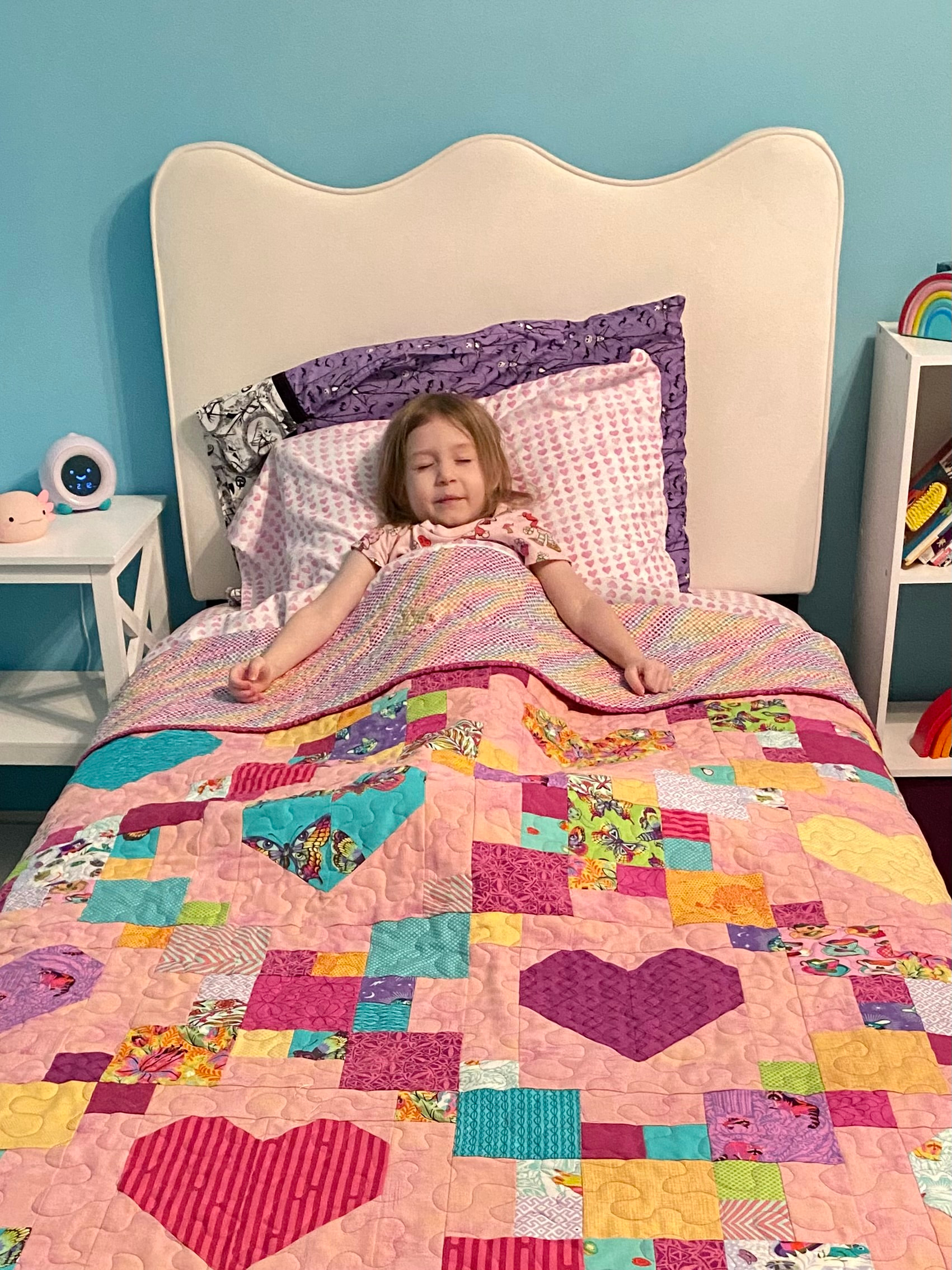 Oh goodness! How sweet! I am so glad you were able to get her bed put together so she can sleep with that gorgeous quilt!