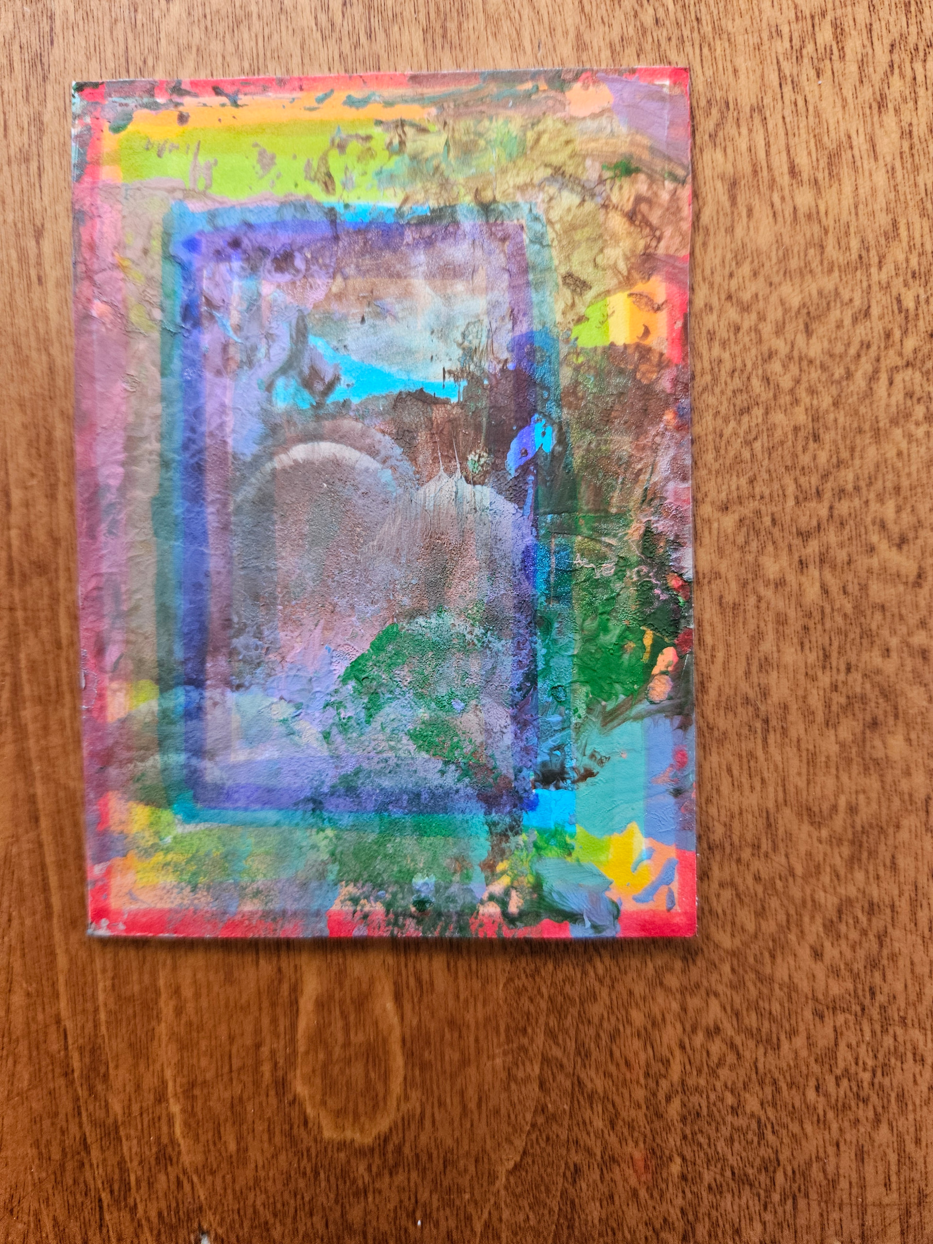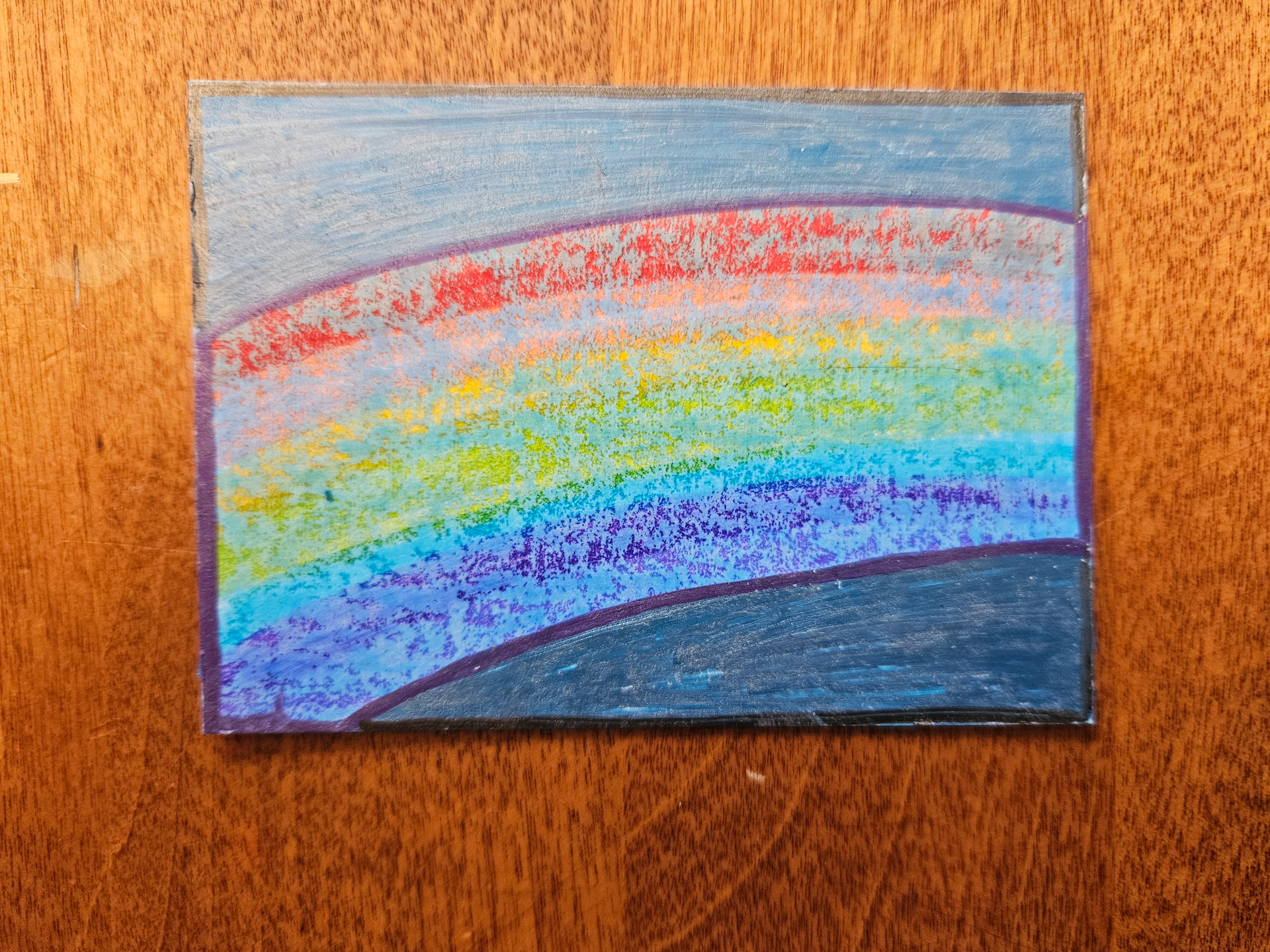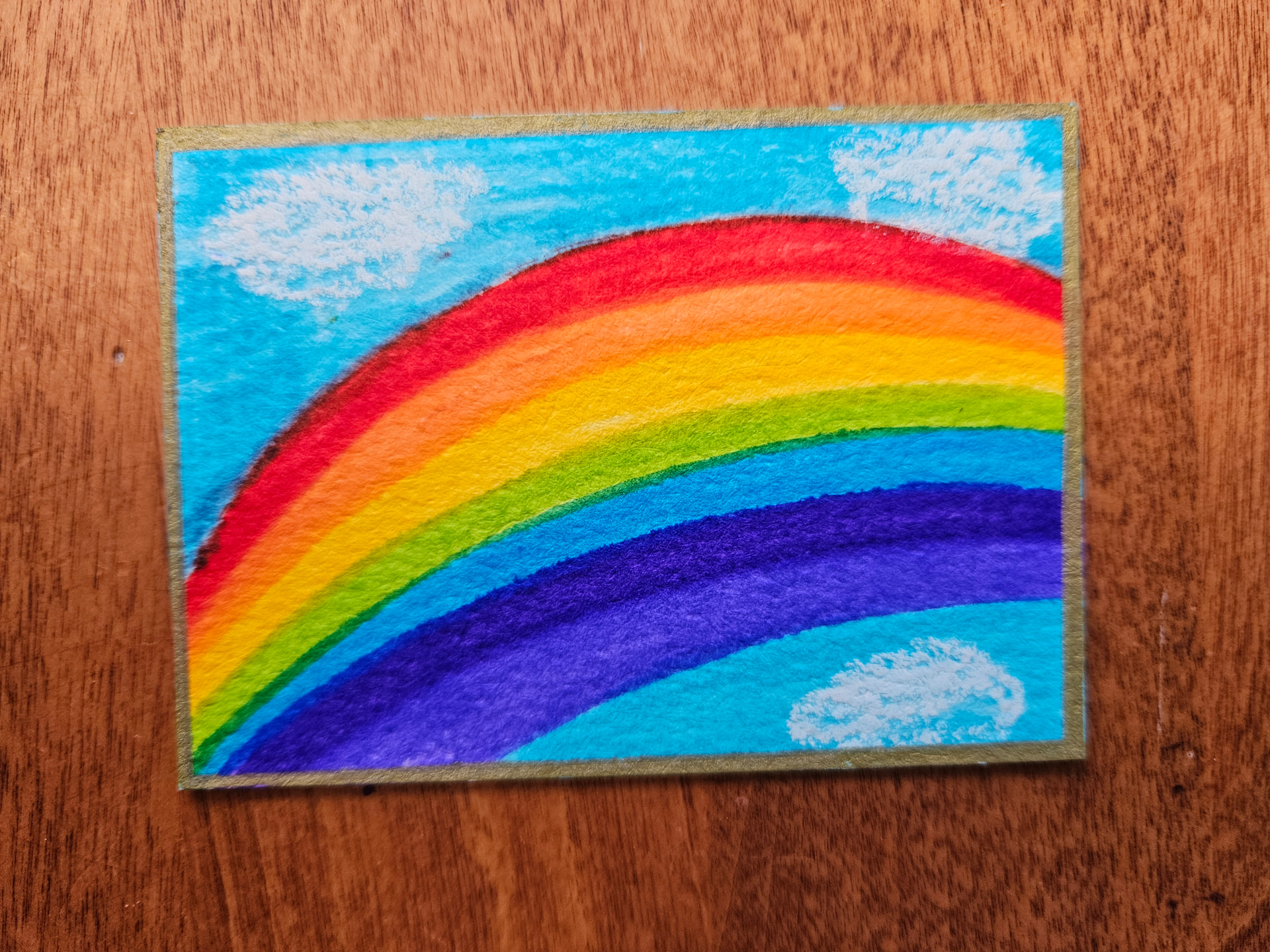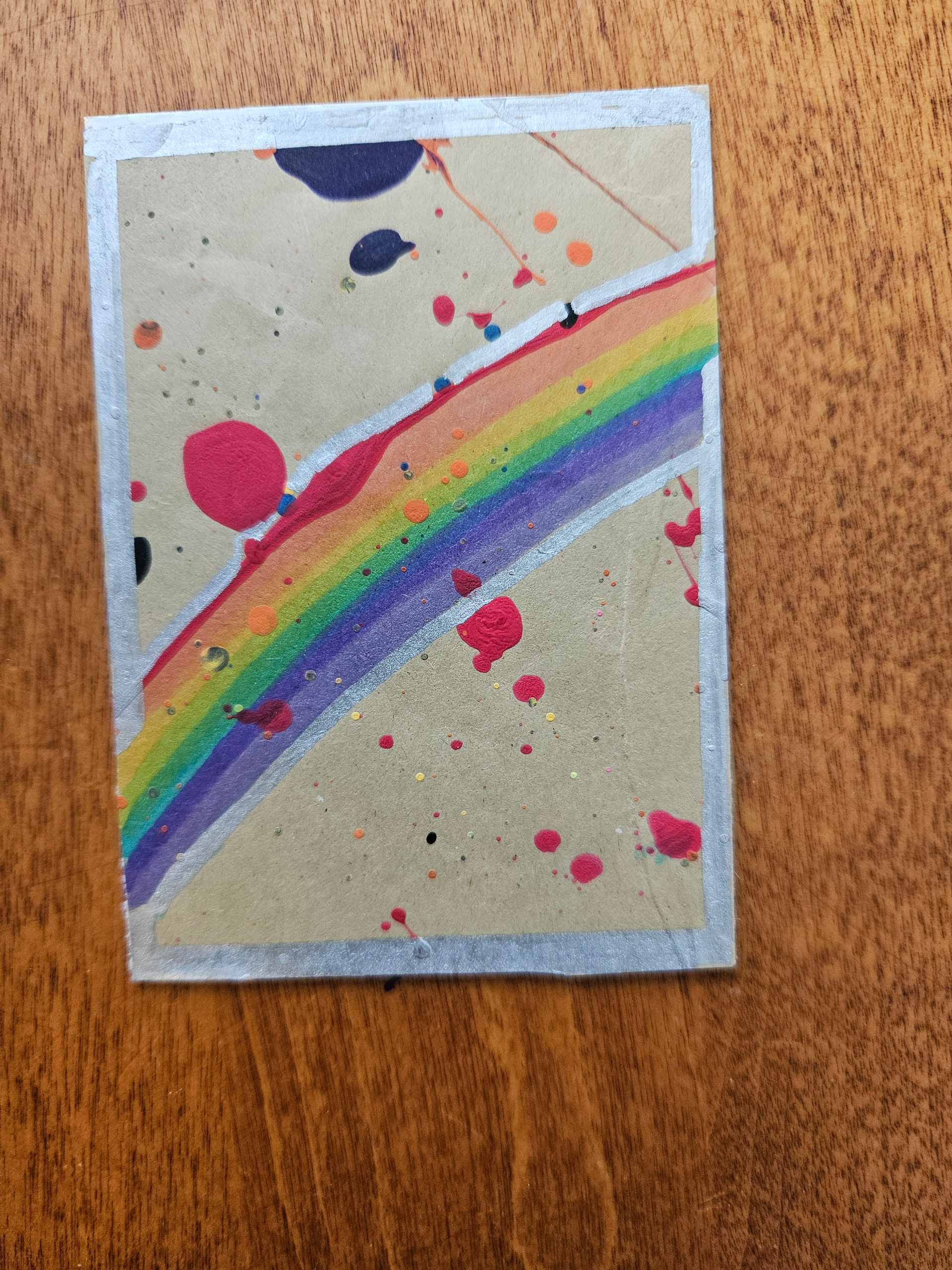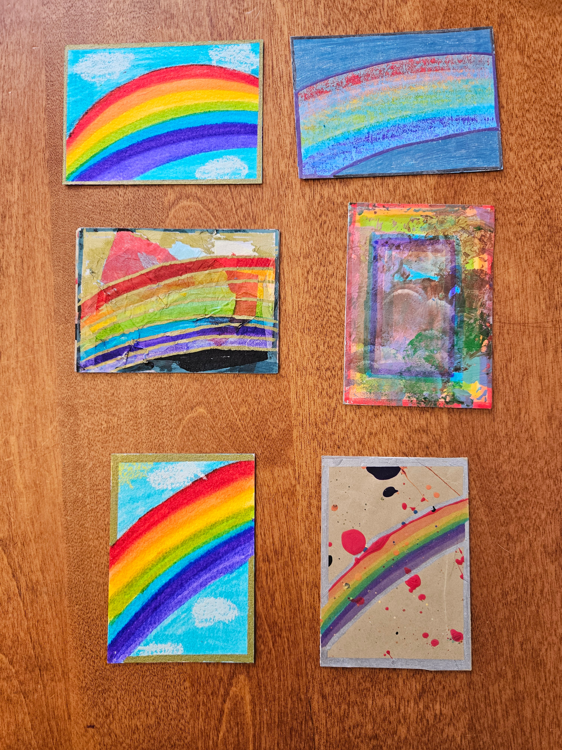 For the February ATC swap, I made a rainbow ATC for someone. I experimented making several of them before I picked my favourite to send out.