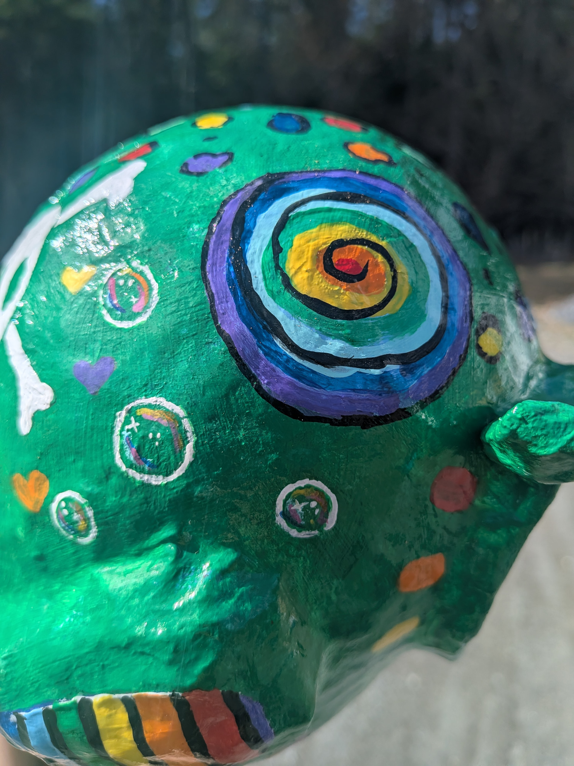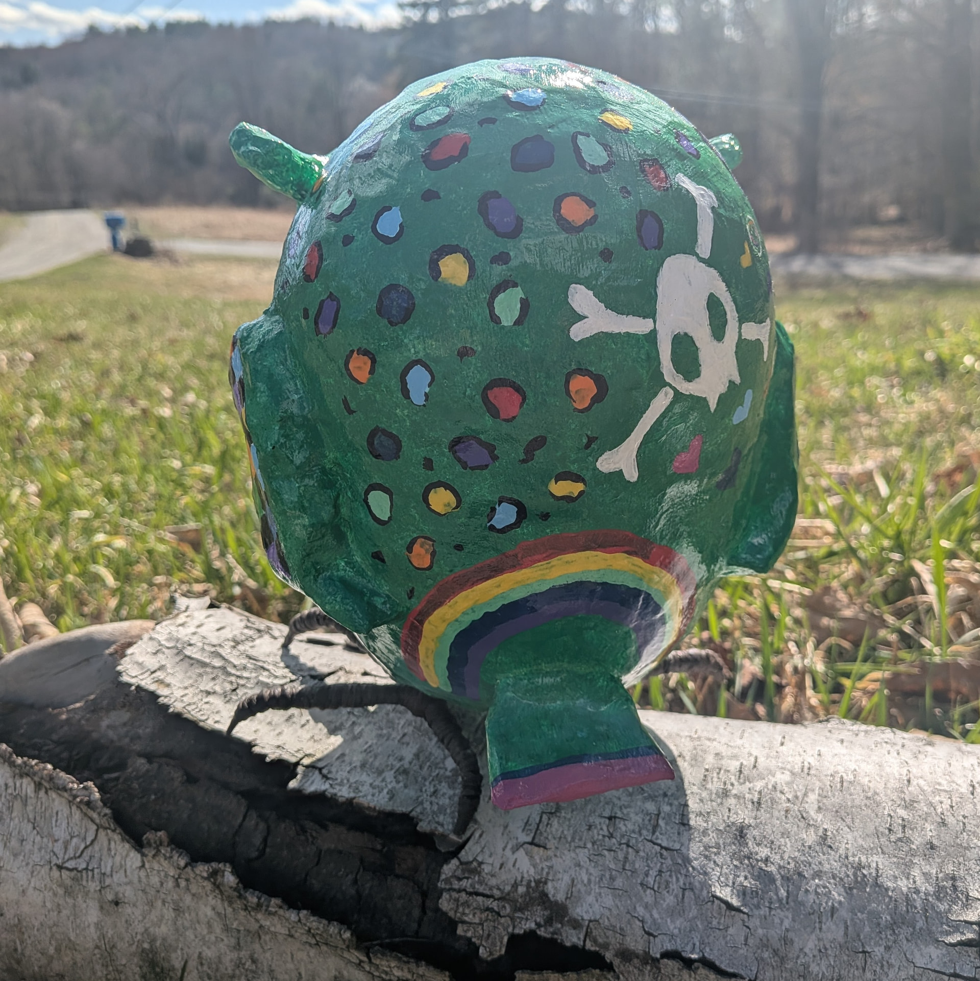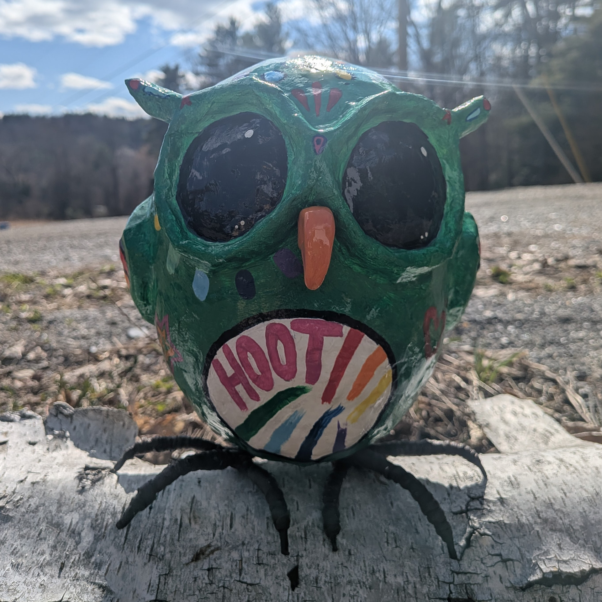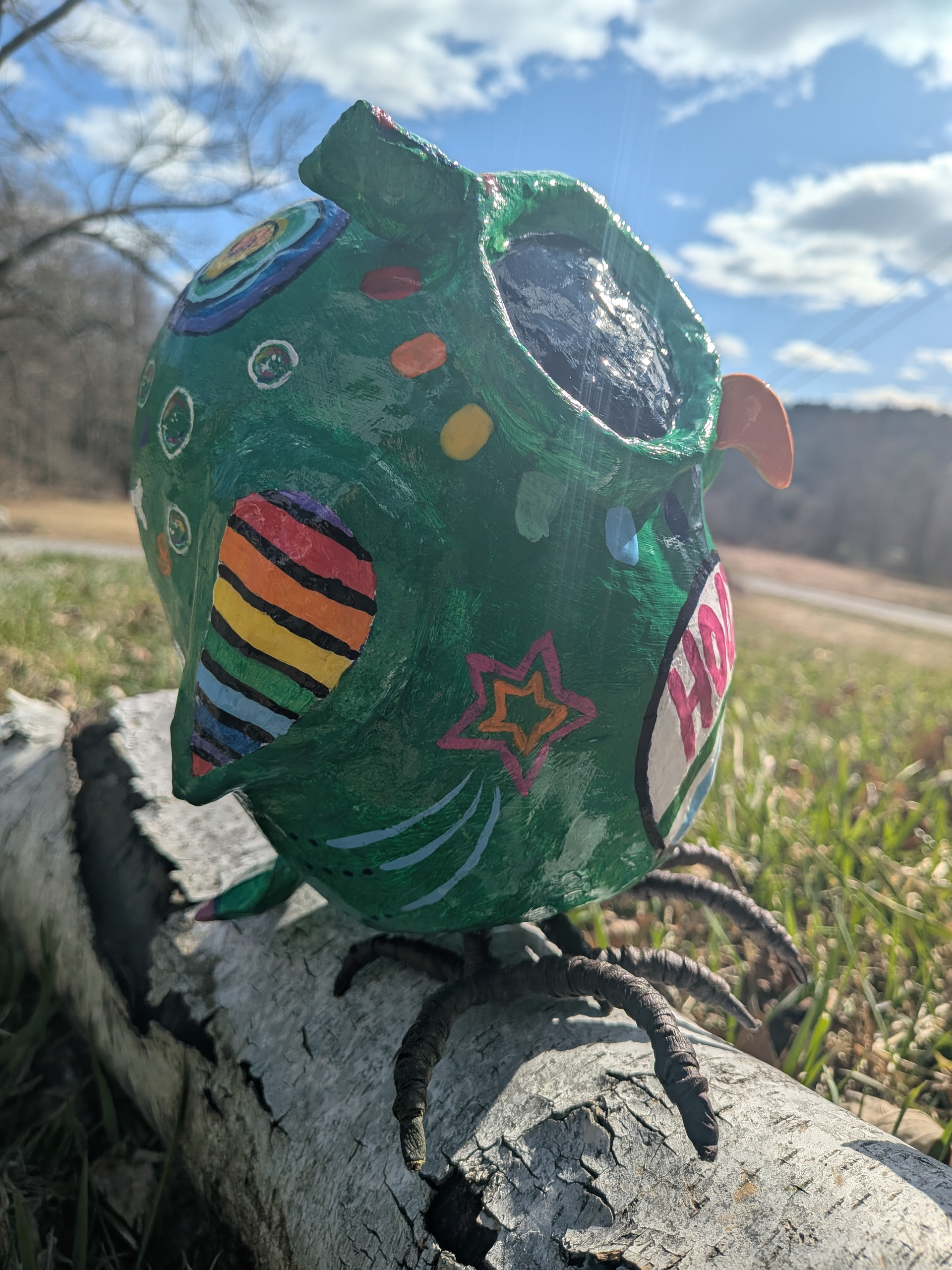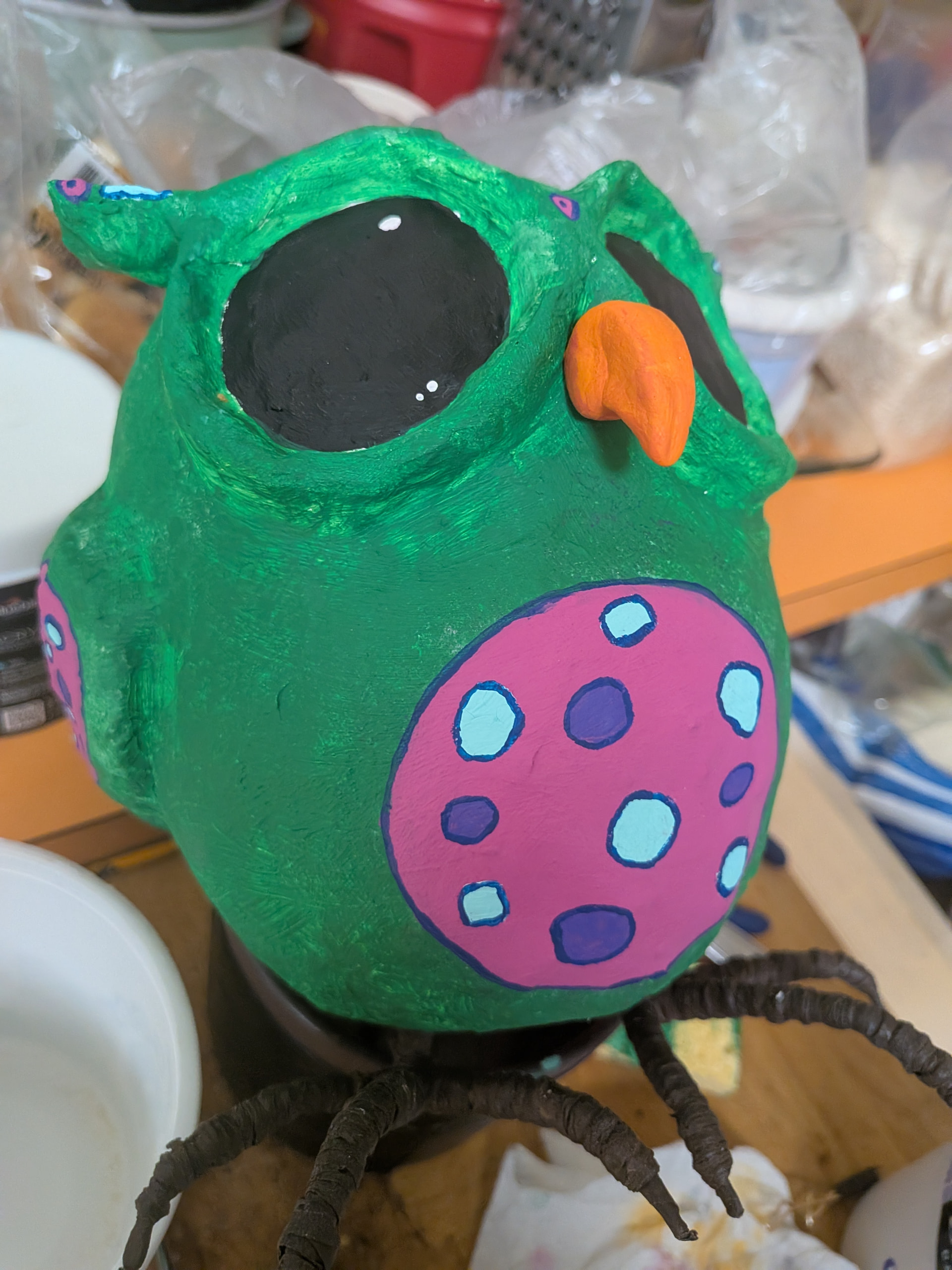 This owl went through two completely different painted versions before I landed on the rainbow fever dream version.