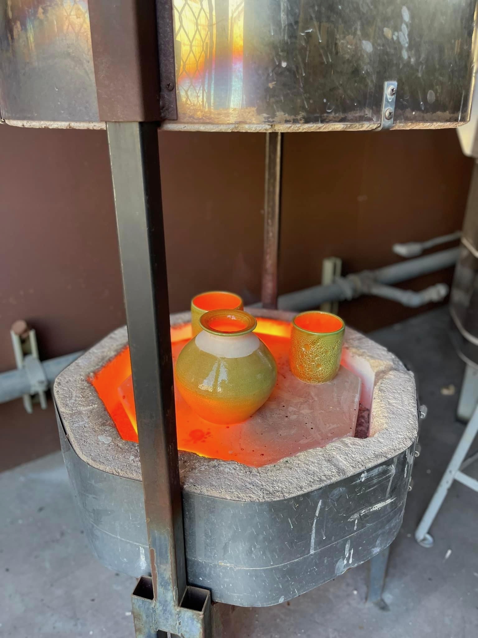 Peeking into the raku kiln.