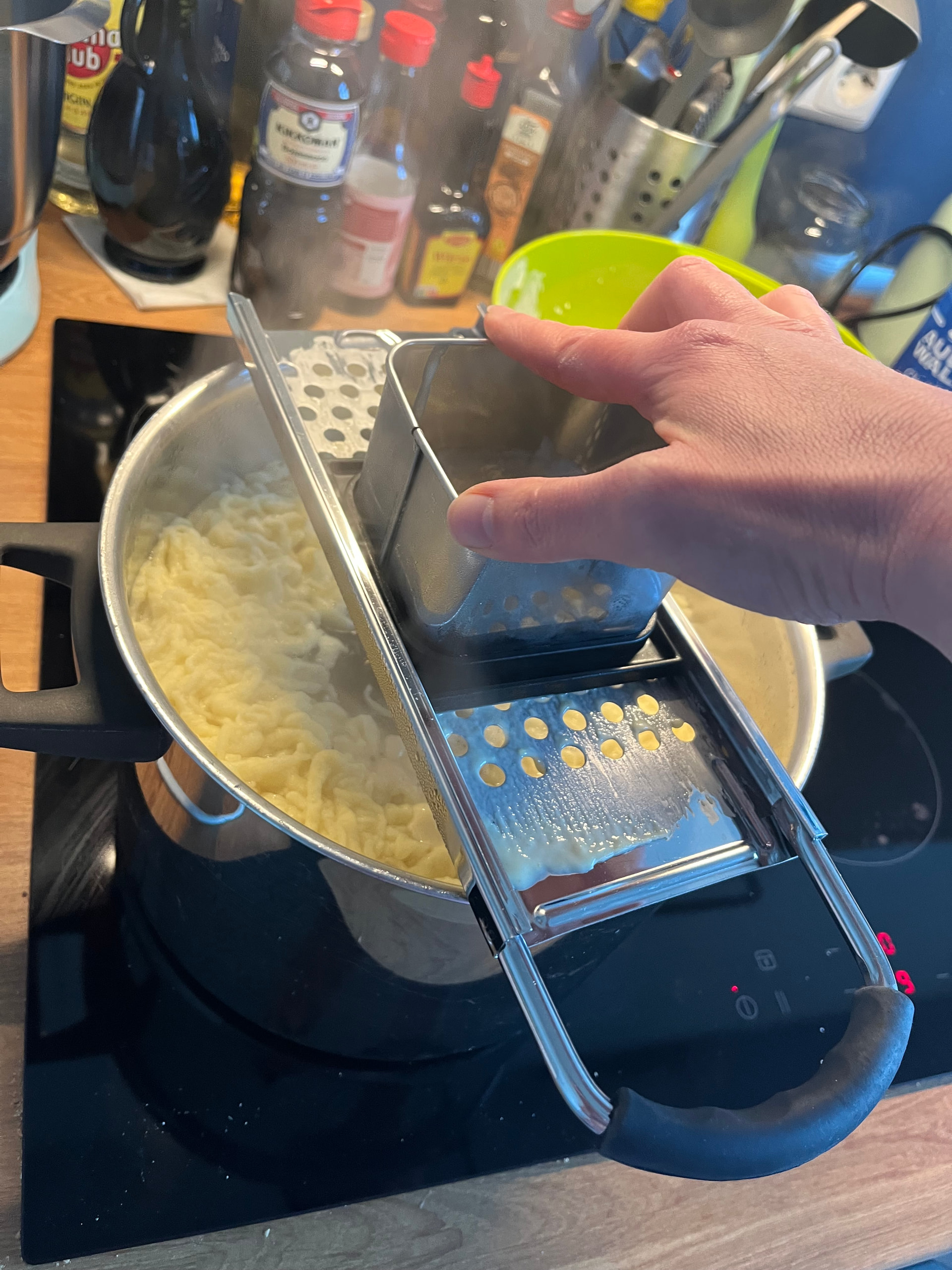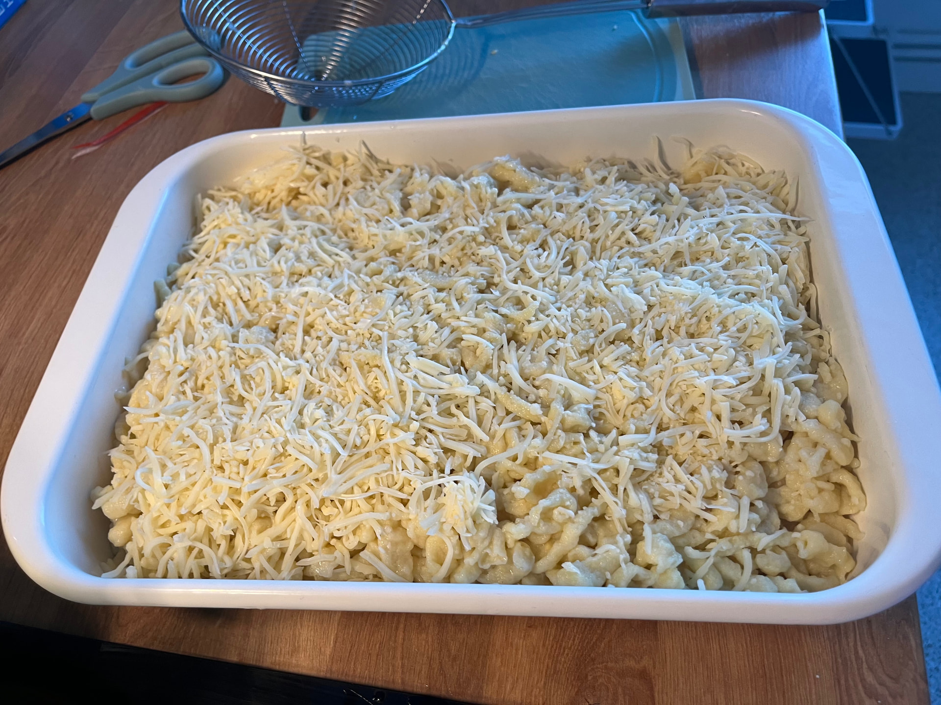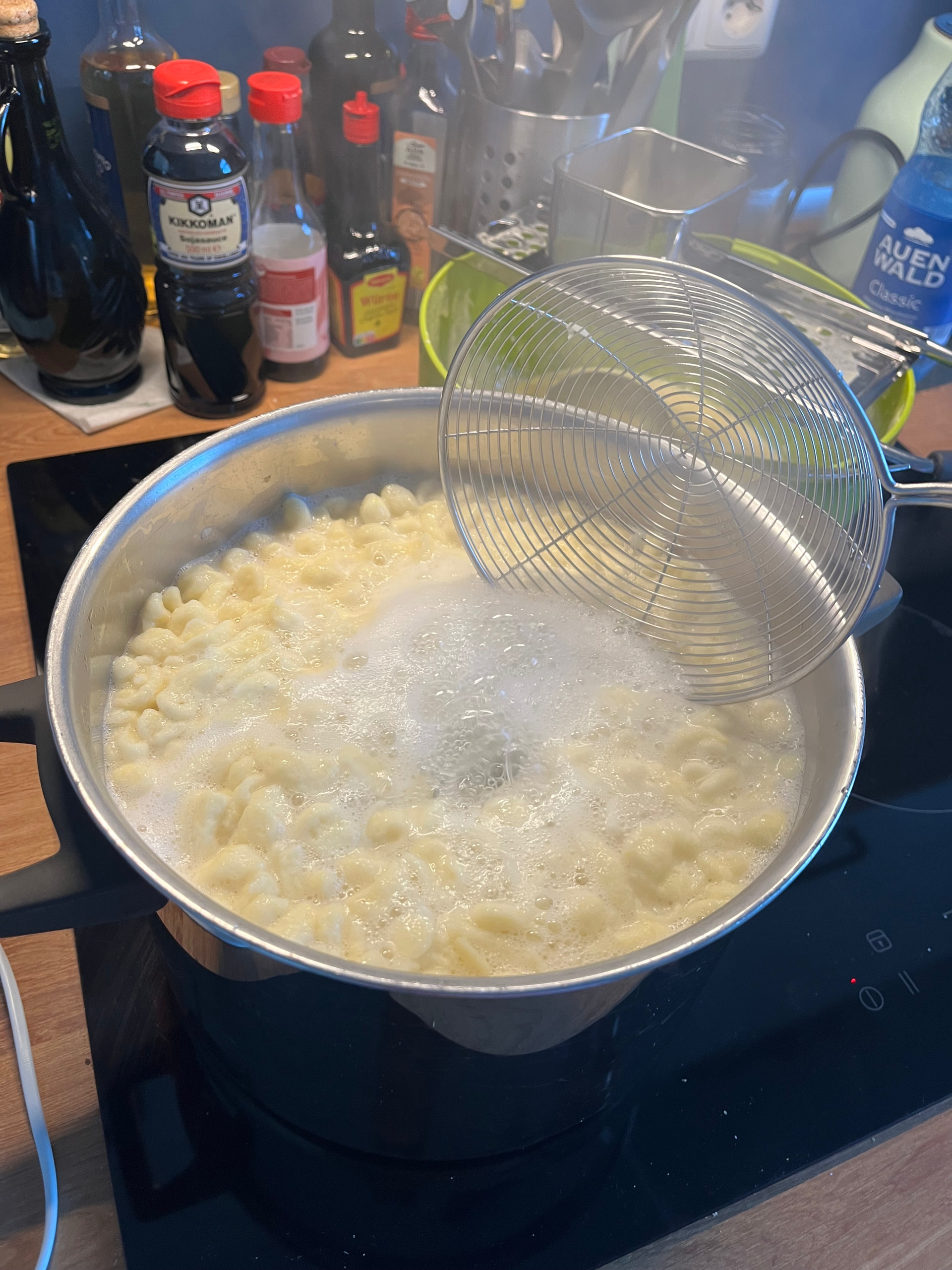 Making Spätzle is so easy with the right tools. And it doesn’t that much longer then cooking dried spätzle. But it’s a bit of a mess.