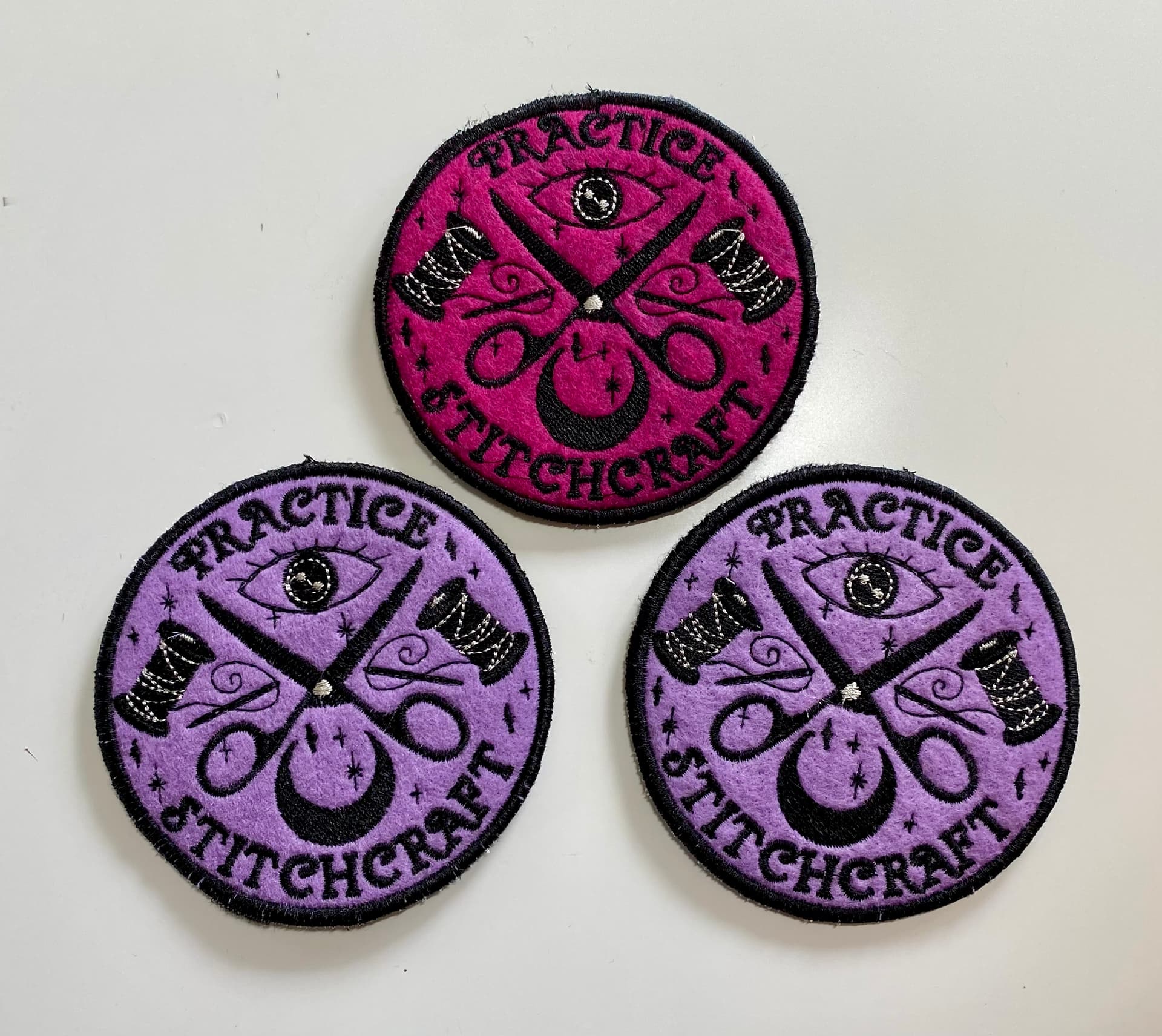 I made three of these Stitchcraft patches, for Abbeeroad, sheepBlue and myself. But I ran out of the good âpremiumâ felt on their purple ones, and fudged mine with some less great magenta. They make me so happy.