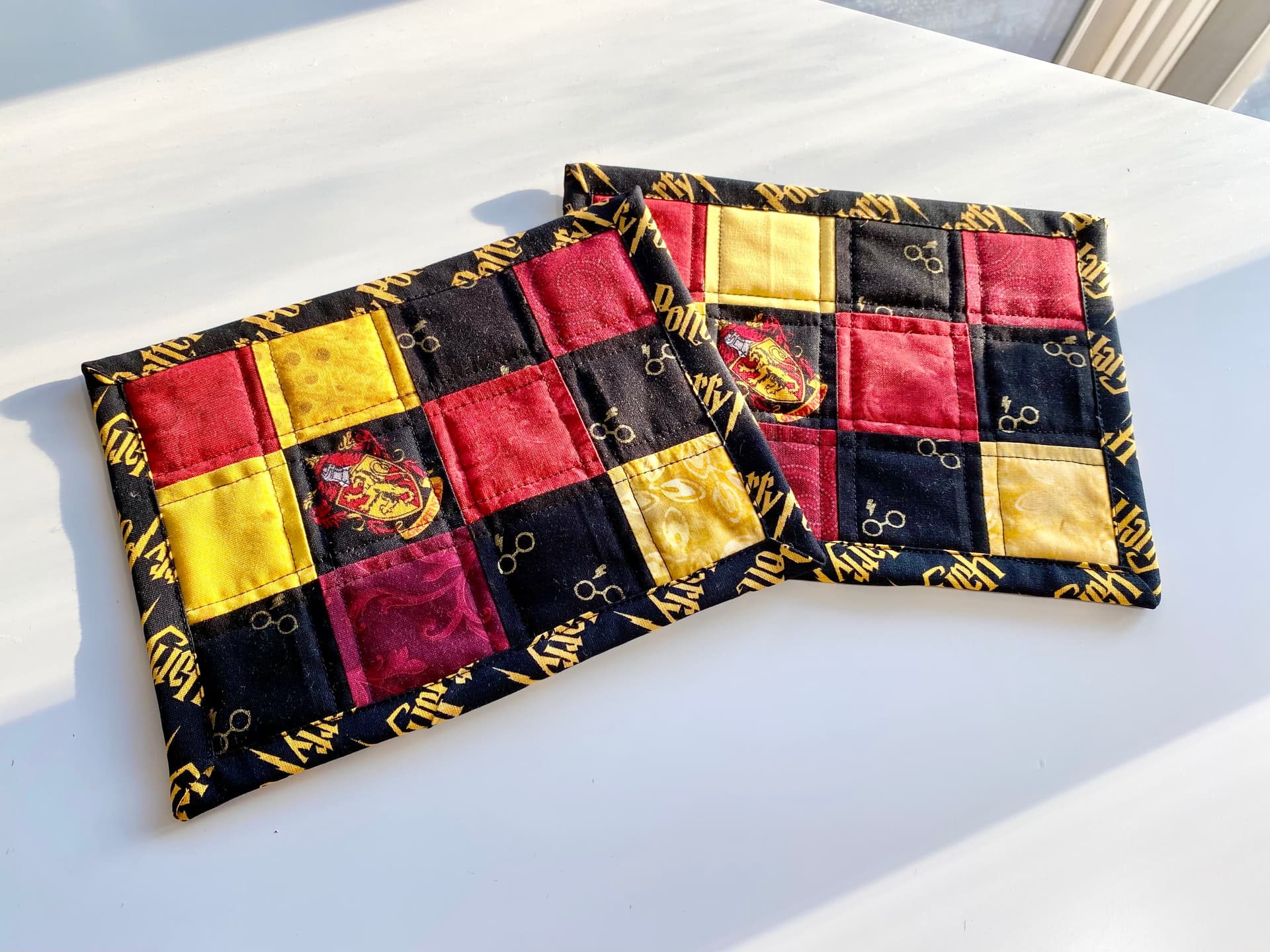 Letâs face it, Iâm on a roll with the mug rugs. And one of the batch neighbor/friend gifts Iâm making this year is a spiced hot tea mix. I figured it would pair well with the mug rugs. This set let me use up a bunch of HP 2.5" squares, AND a chunk of binding leftover from HP themed charity quilts. I was able to bind these two, and might even be able to do one more. This pair will go to my friend Melissaâs kids, along with the tea mix, some Butterbeer fudge, and an HP Feasts & Festivities book. I got two for my birthday, so I thought Iâd pass one onto them.
